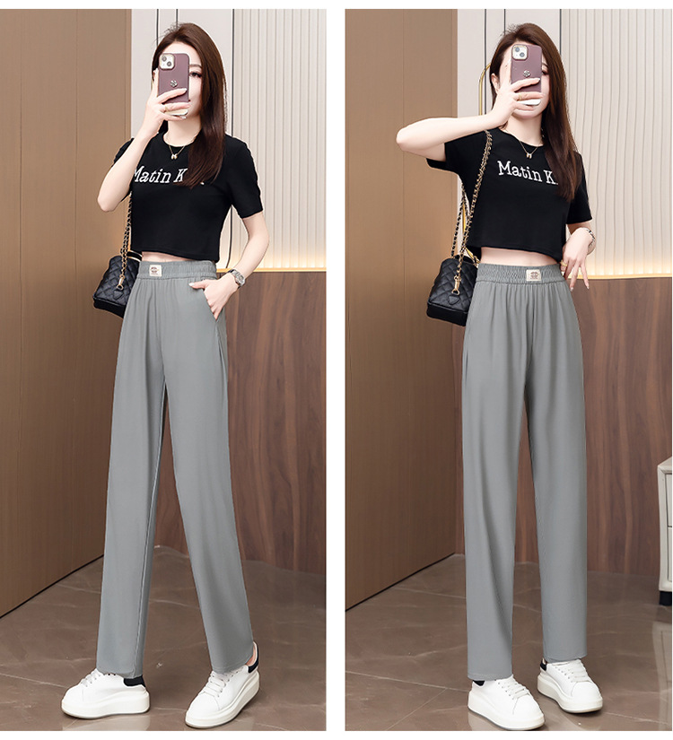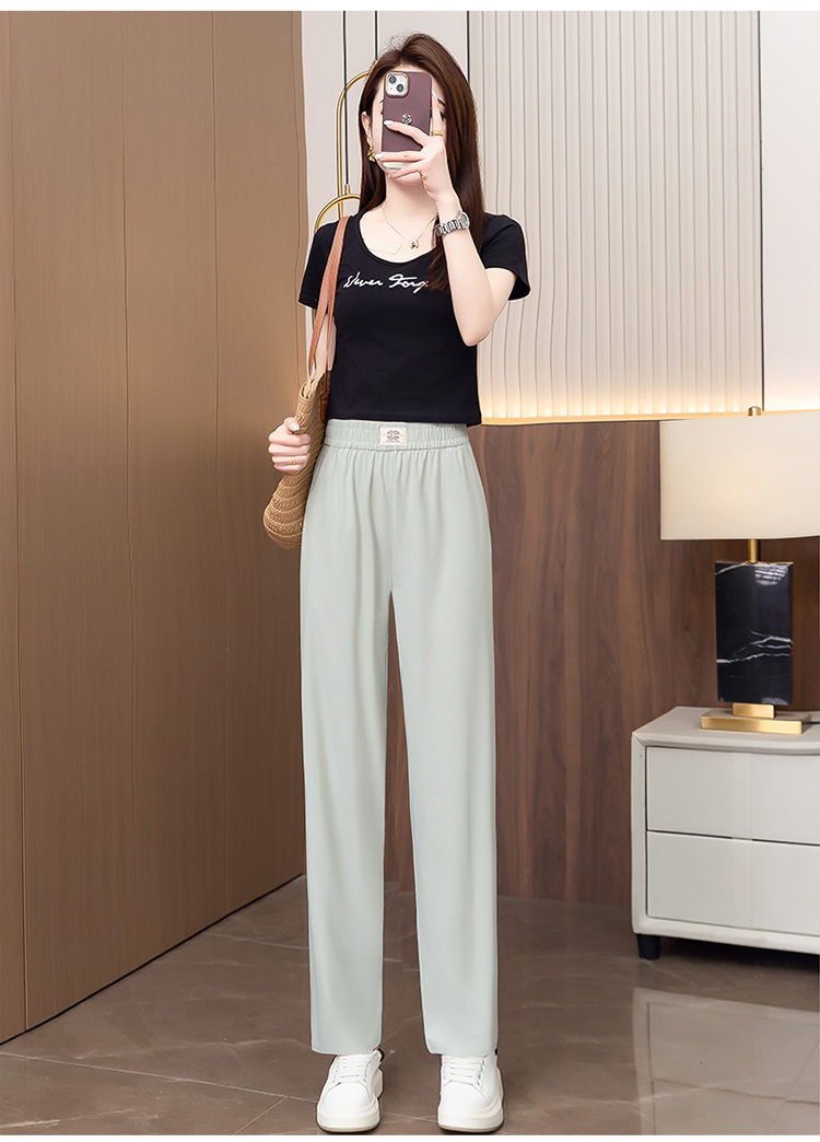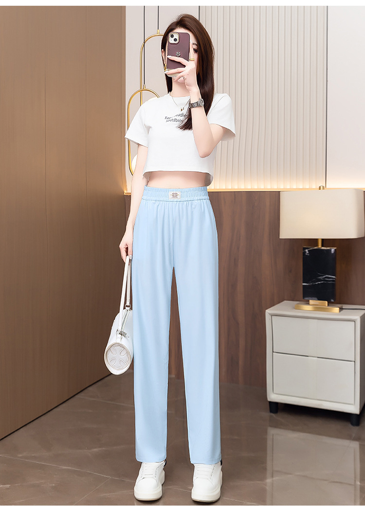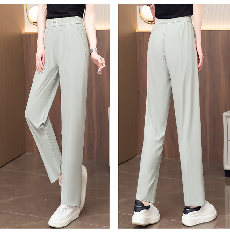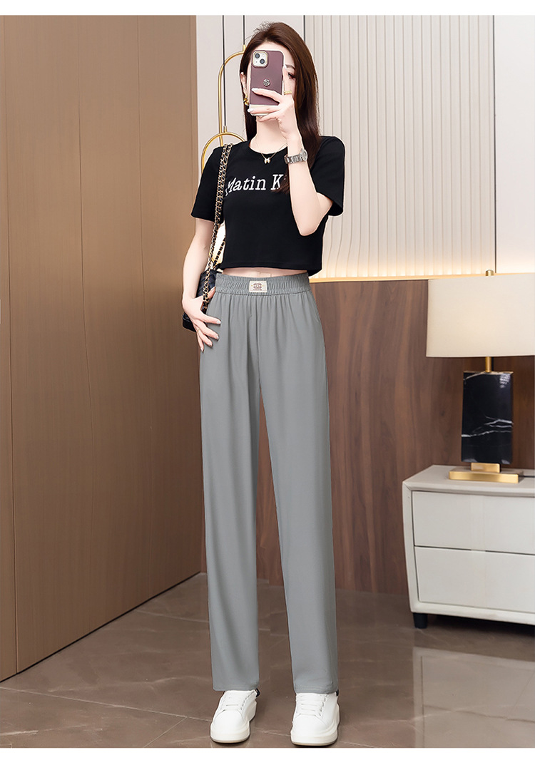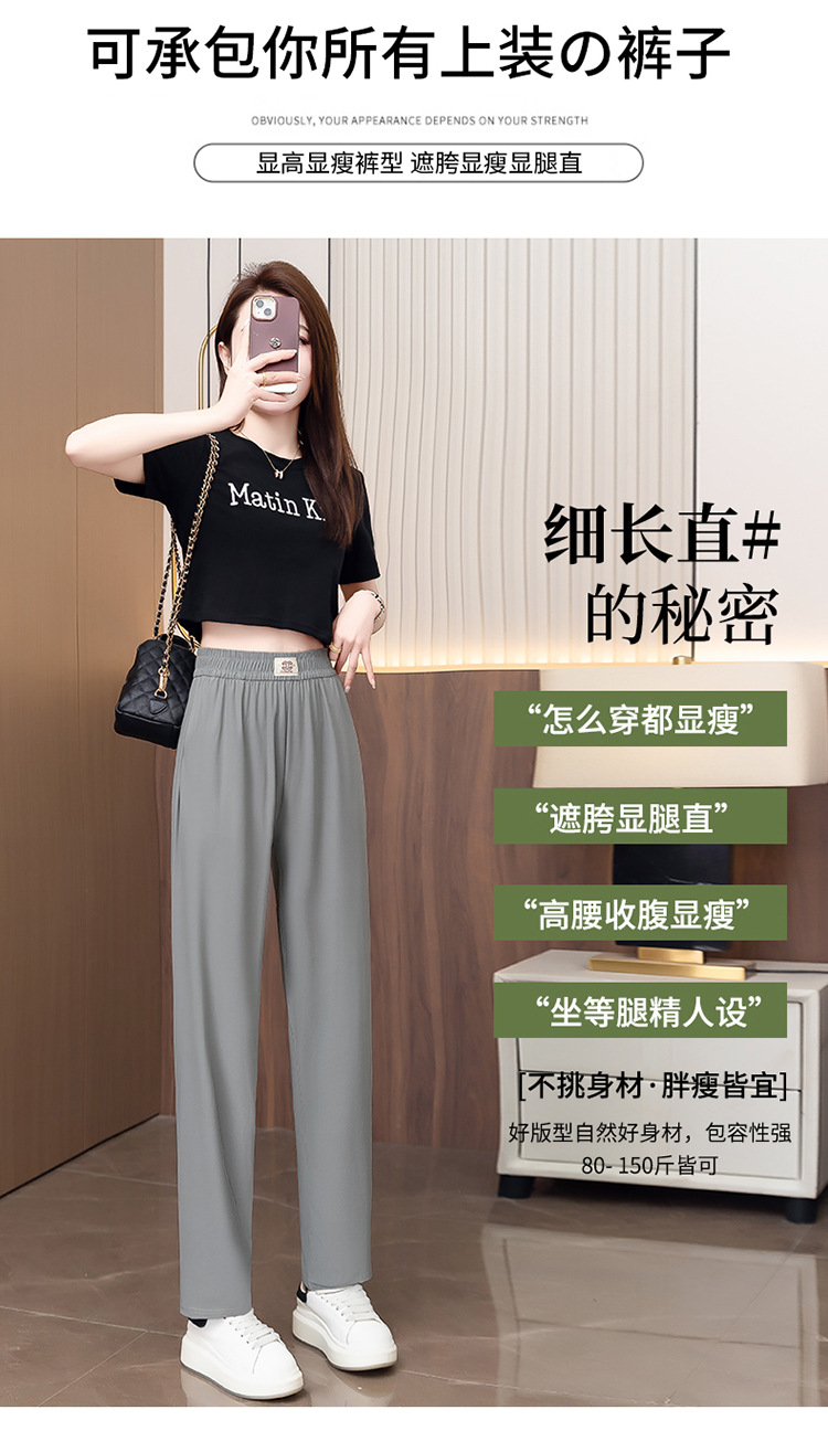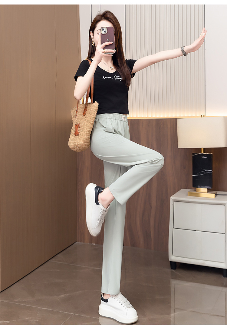 여성용 캐주얼 하렘 팬츠, 하이웨이스트 9부 팬츠, 루즈한 아이스 실크 여름 팬츠, 여성용 신상 여름 얇은 신축성 있는 허리 팬츠스토어 가기