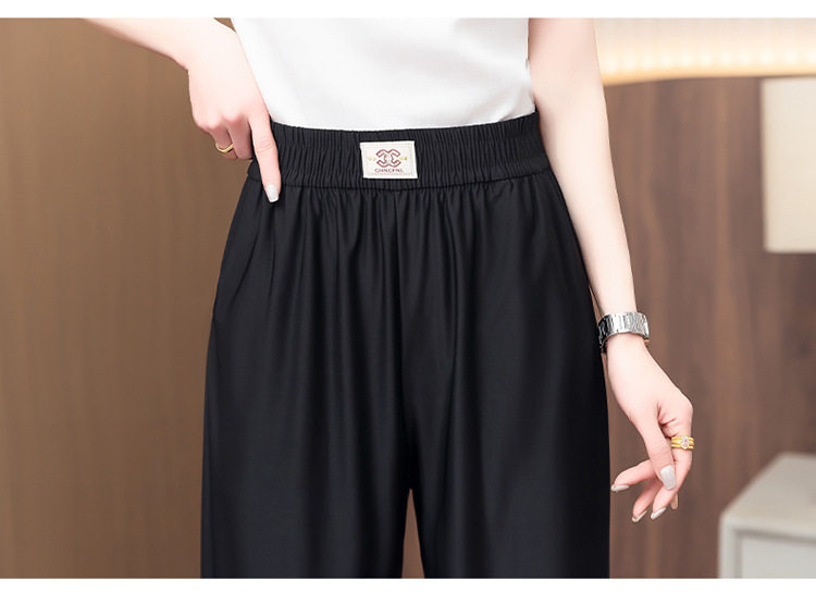 여성용 캐주얼 하렘 팬츠, 하이웨이스트 9부 팬츠, 루즈한 아이스 실크 여름 팬츠, 여성용 신상 여름 얇은 신축성 있는 허리 팬츠