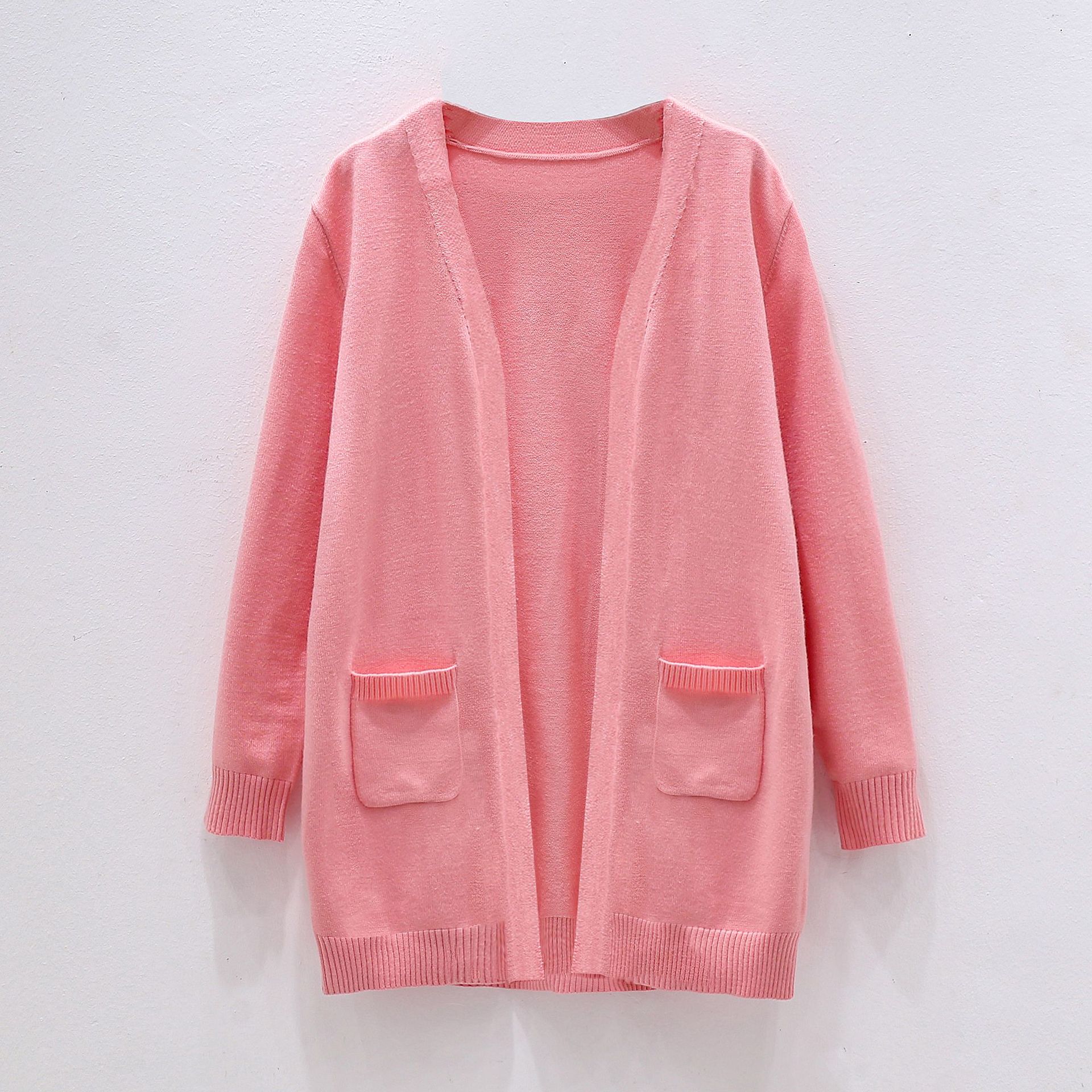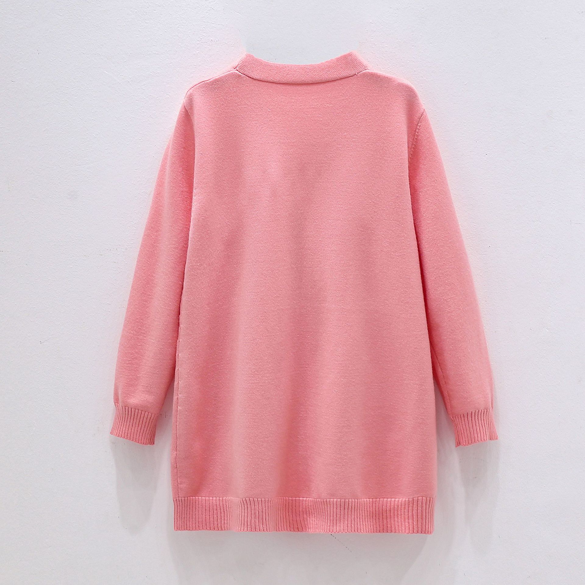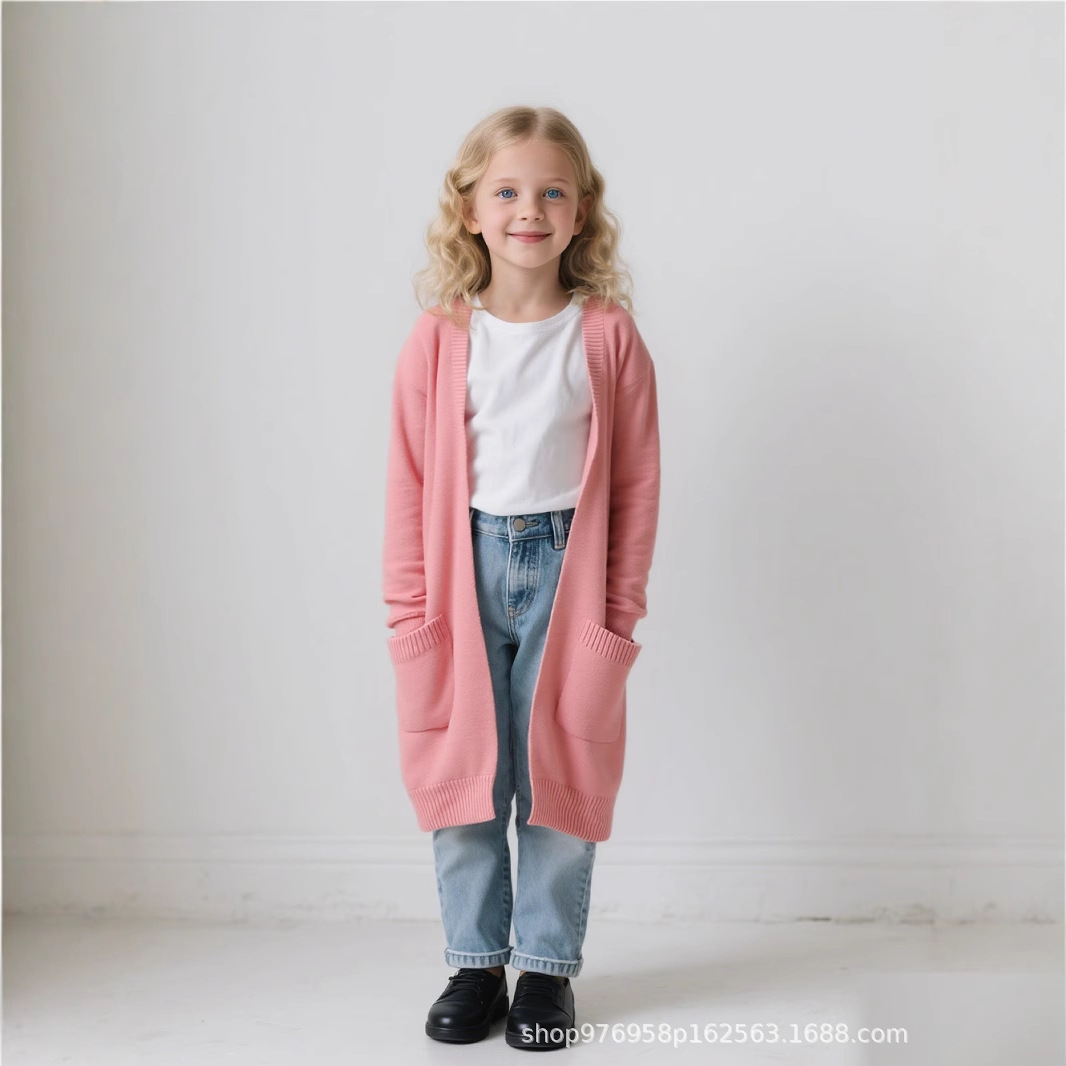 유럽과 미국의 가을 겨울 여아용 신상 루즈핏 포켓 니트 가디건 롱 스웨터 단색 캐주얼 자켓 아동복