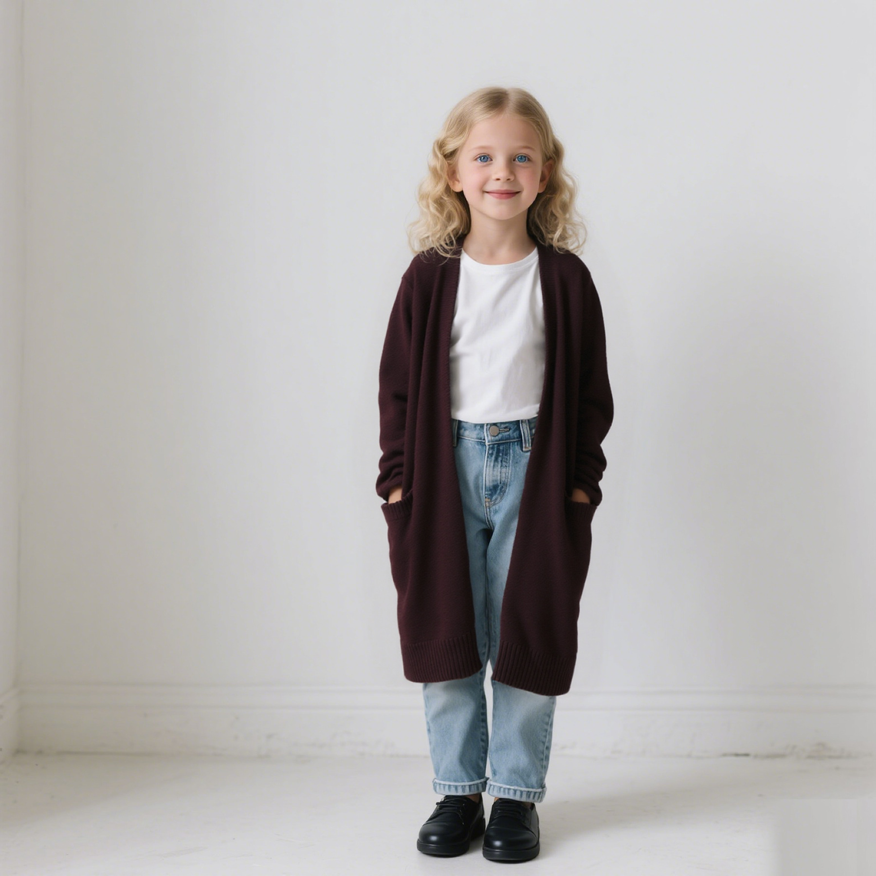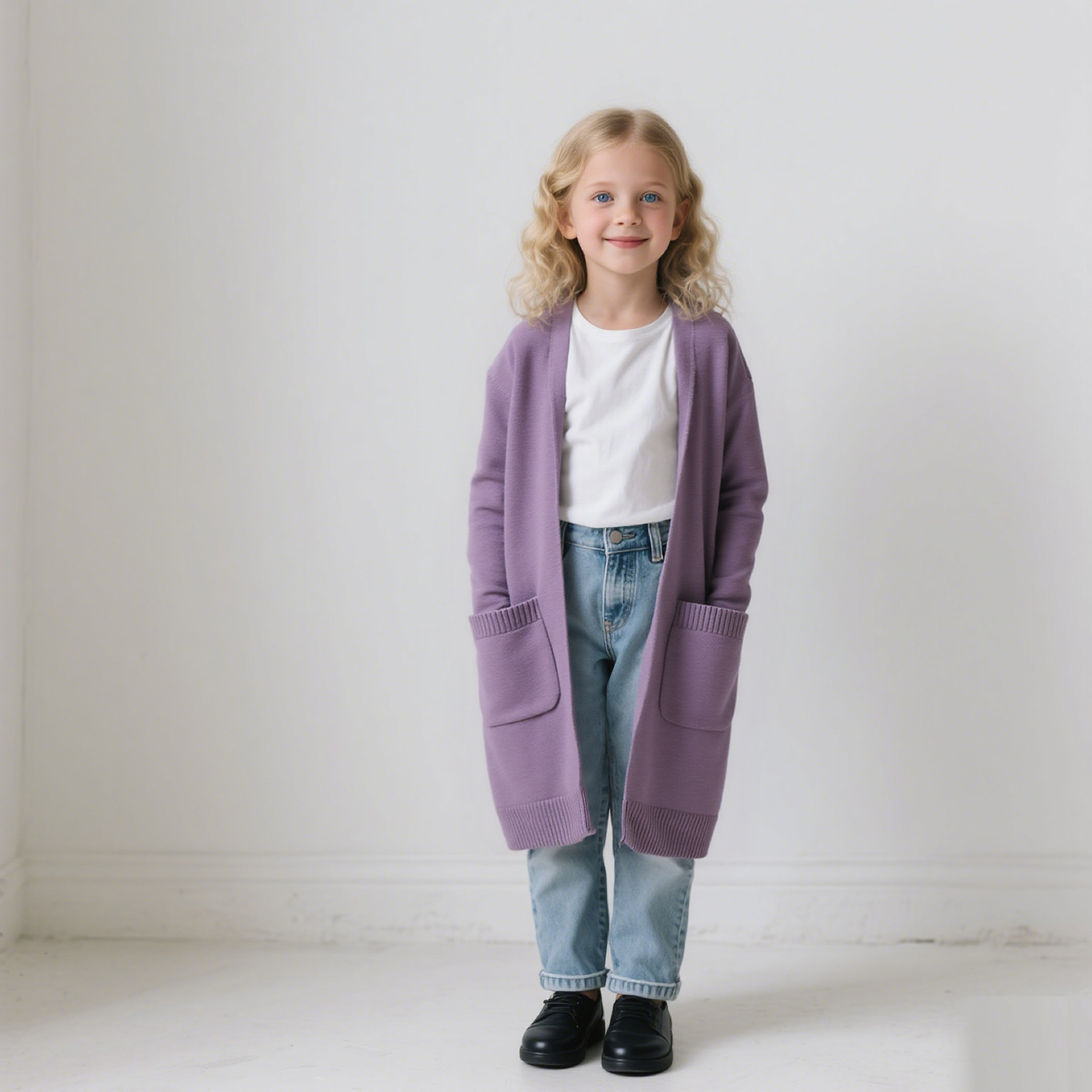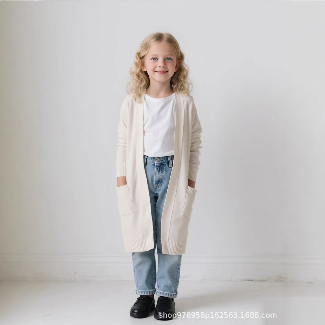 유럽과 미국의 가을 겨울 여아용 신상 루즈핏 포켓 니트 가디건 롱 스웨터 단색 캐주얼 자켓 아동복