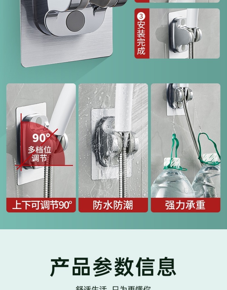 |轻奢吸盘花洒支架免打孔固定座淋浴喷头支架神器可调节墙底座架