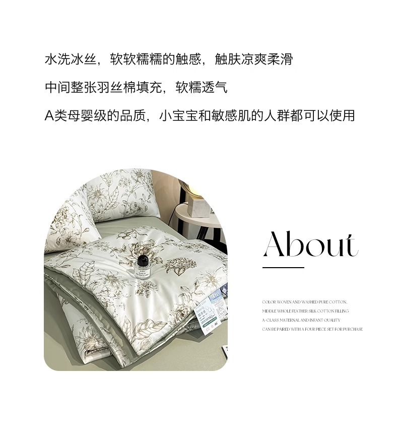 • 200x220cm 싱글 여름 이불 [실키, 시원함, 세탁기 사용 가능]