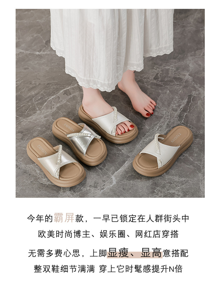 여성을위한 두꺼운 밑창 높이 증가 샌들 2025 새로운 여름 스타일 스커트와 작은 향기로운 프랑스 라인 석 샌들