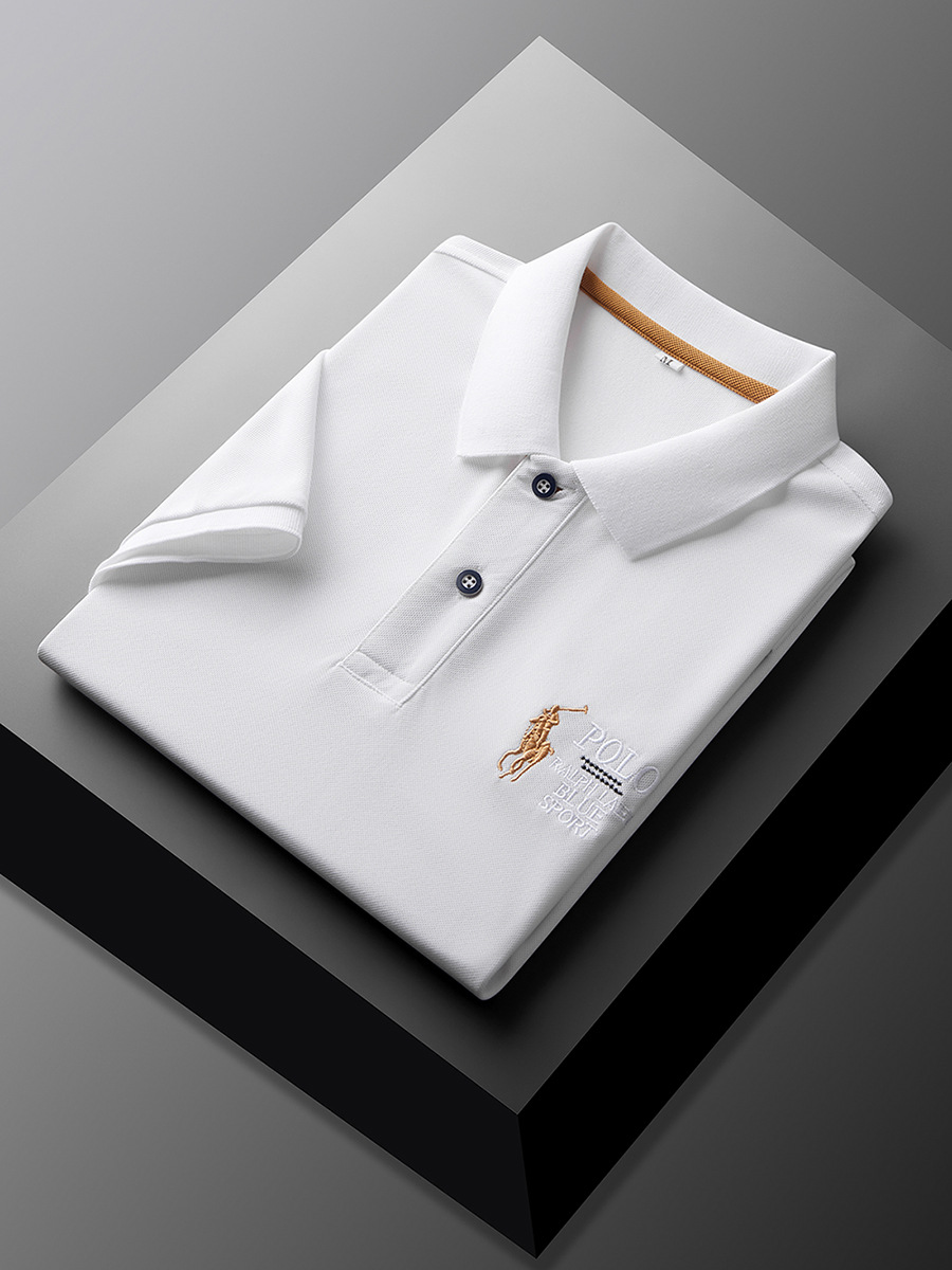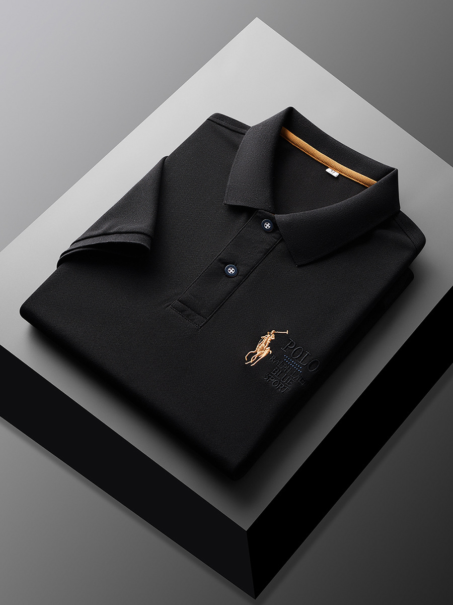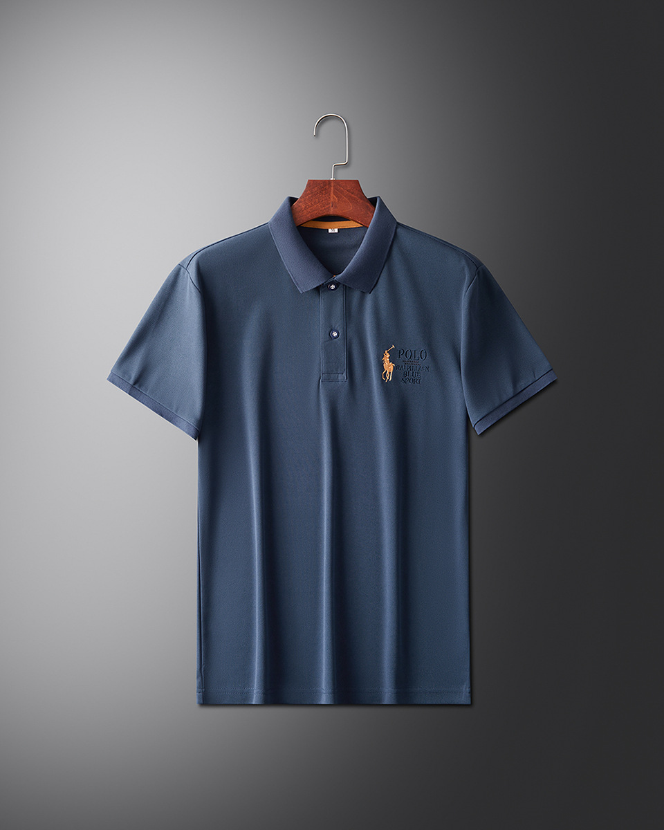 국경 간 남성 여름 인기 반팔 티셔츠 비즈니스 캐주얼 옷깃 솔리드 컬러 자수 루즈 폴로 셔츠 dropshipping스토어 가기