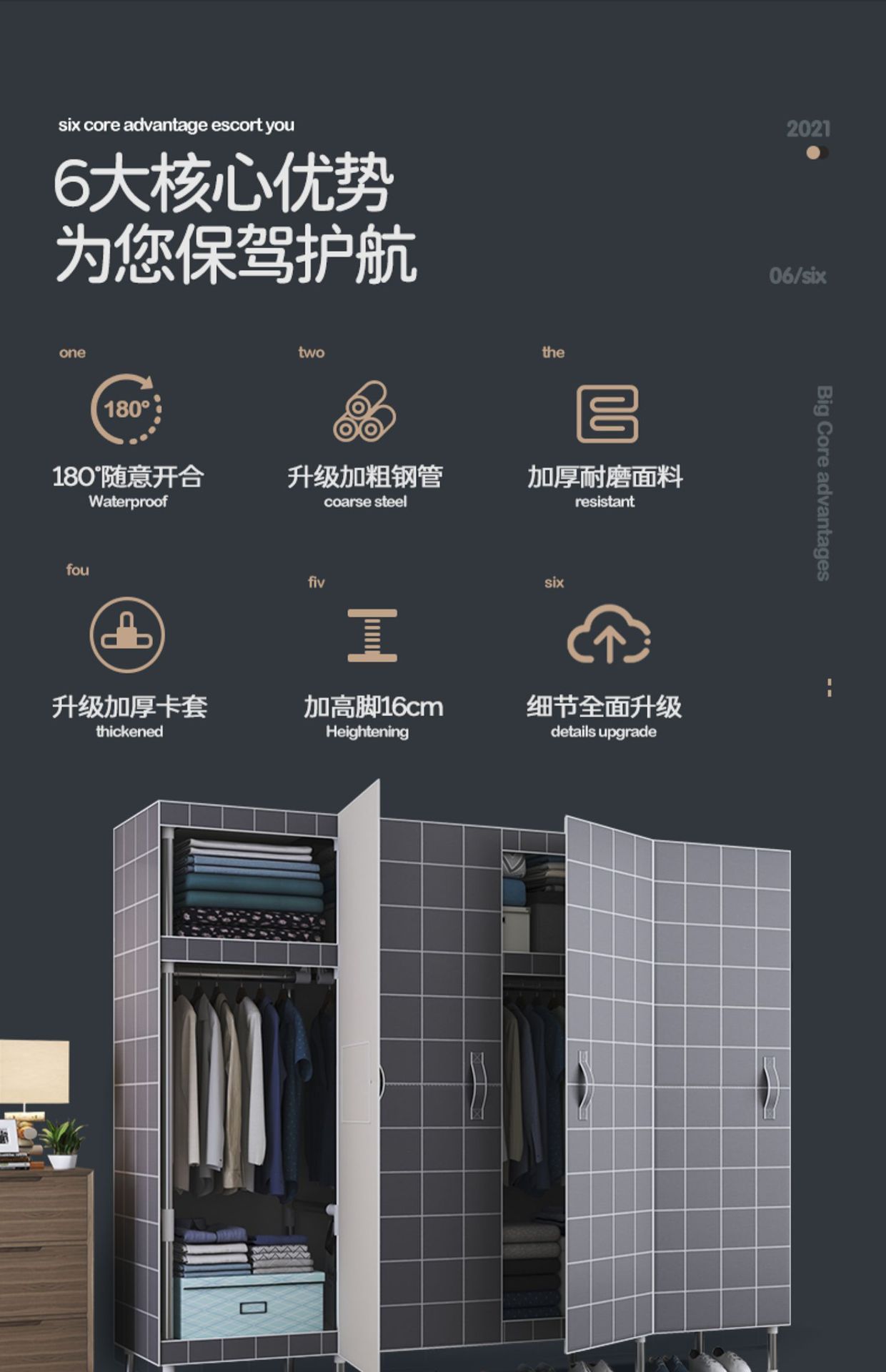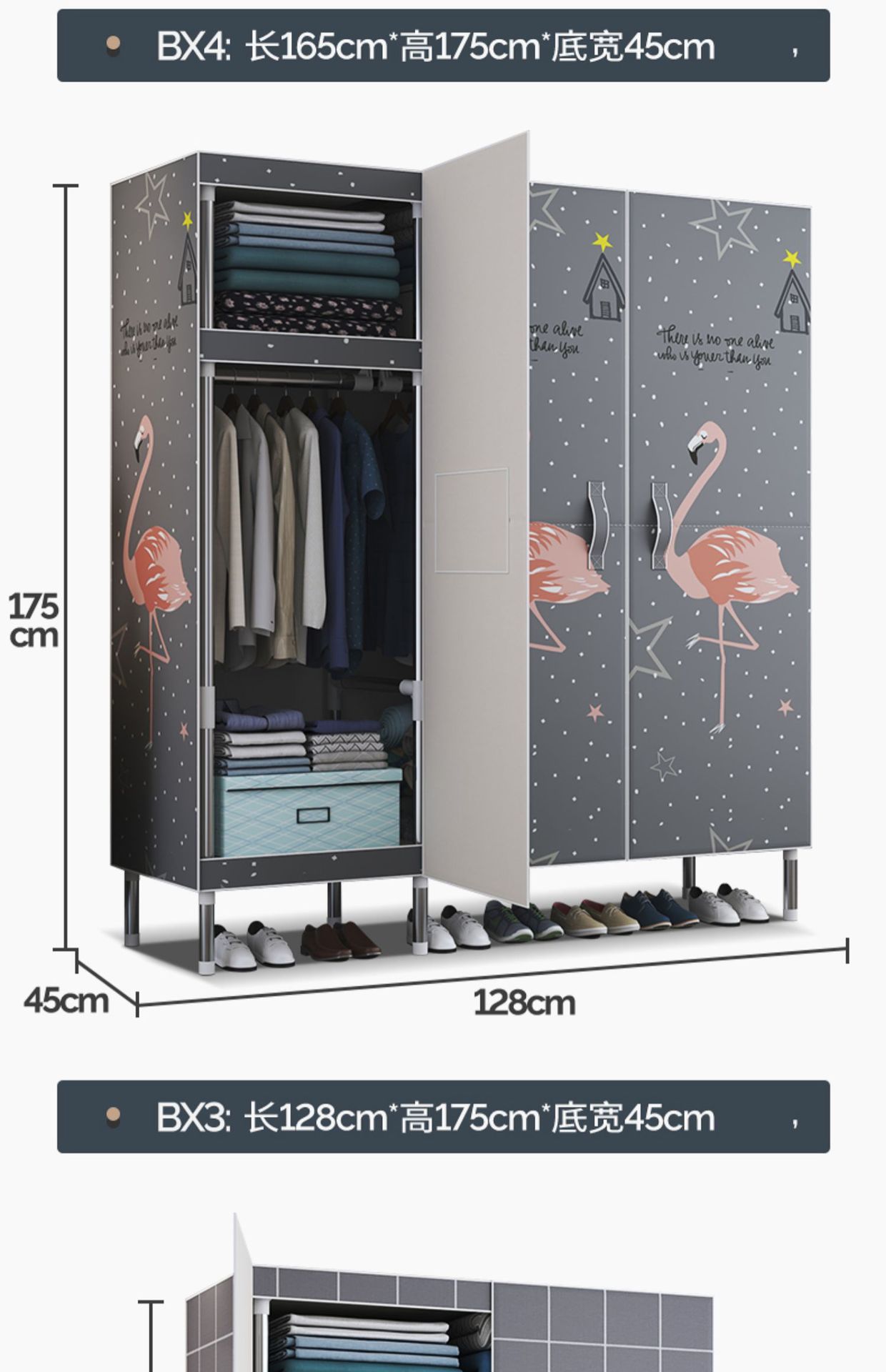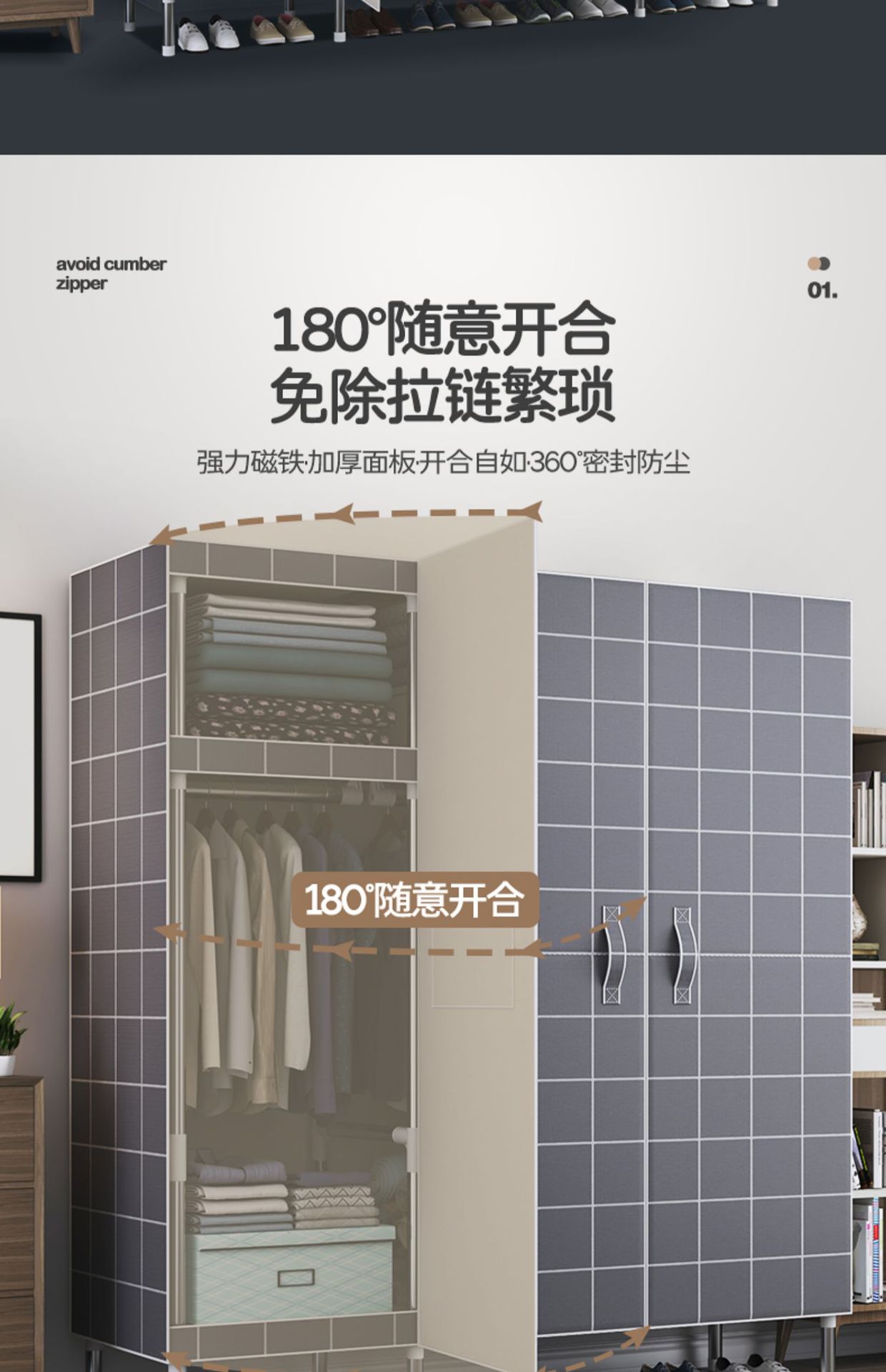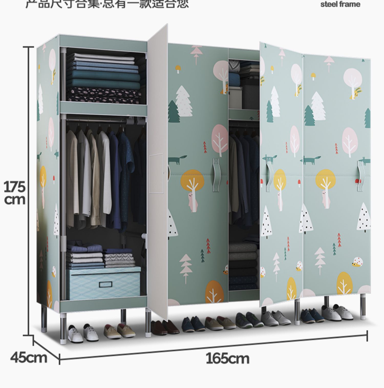 옷장 홈 침실 현대적인 단순 간단한 임대 주택 오픈 도어 천 옷장 강철 파이프 두꺼운 강화 저장스토어 가기