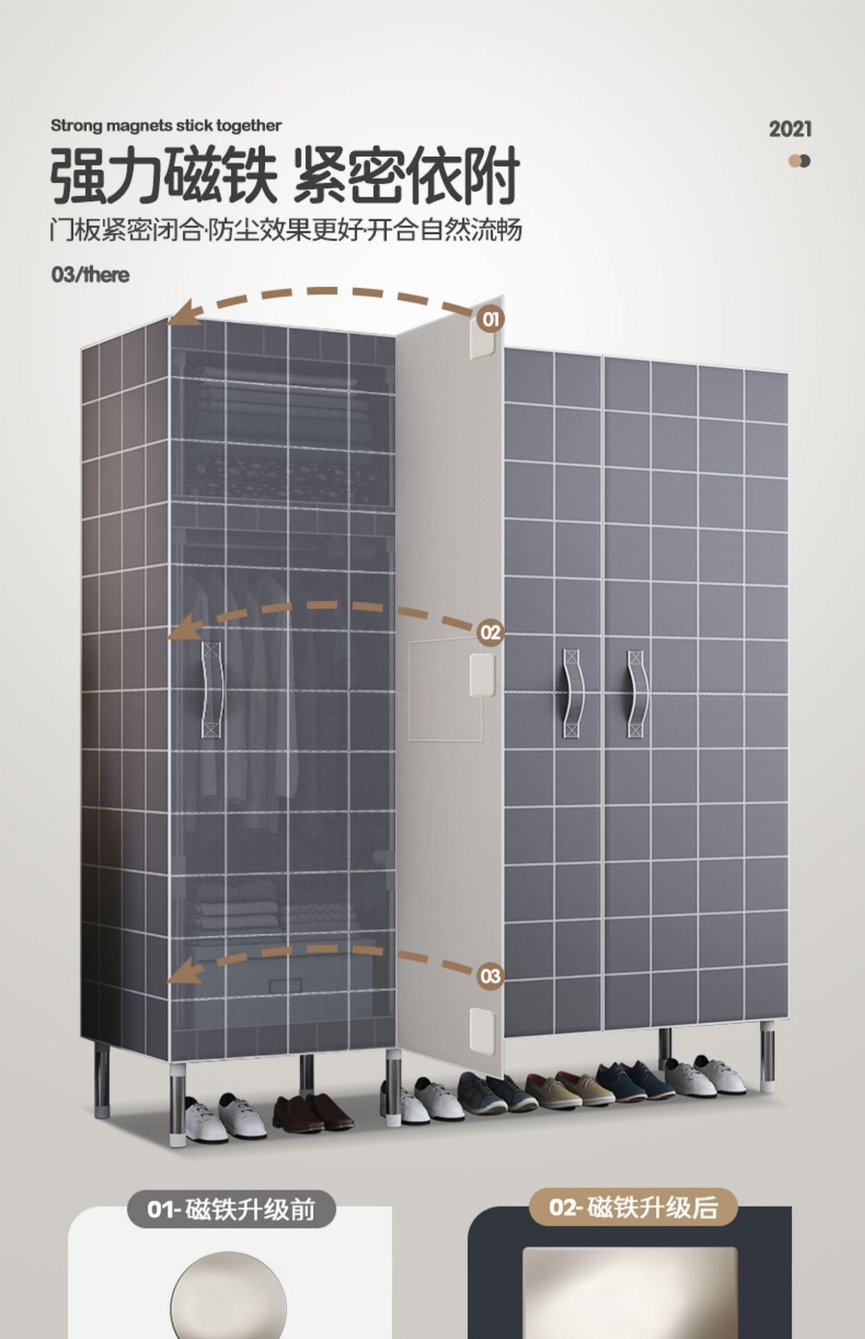 옷장 홈 침실 현대적인 단순 간단한 임대 주택 오픈 도어 천 옷장 강철 파이프 두꺼운 강화 저장
