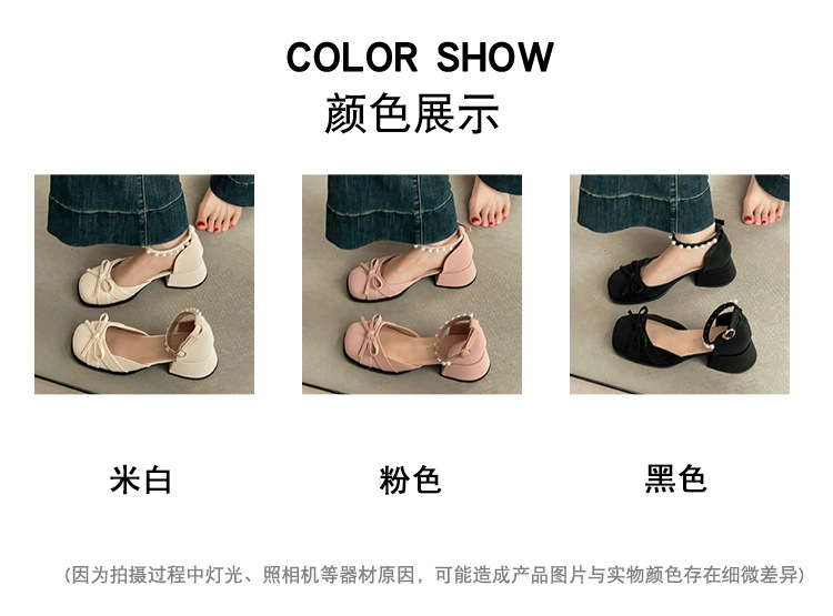 여성을위한 프렌치 보우 두꺼운 굽 메리 제인 신발 2025 여름 새로운 요정 스타일 스커트 하이힐 패션 샌들스토어 가기