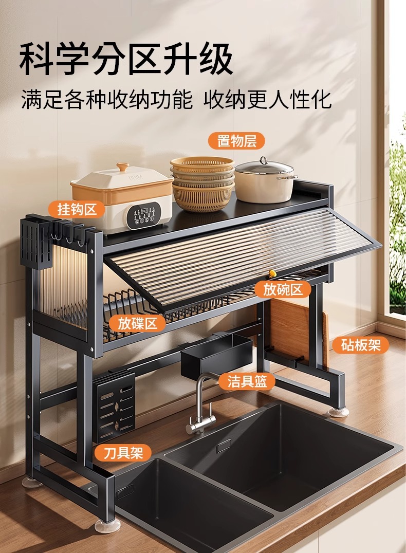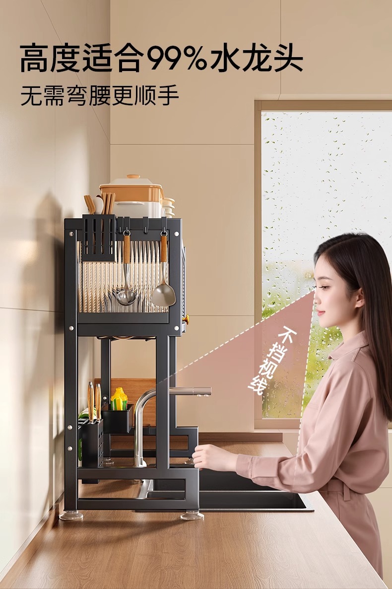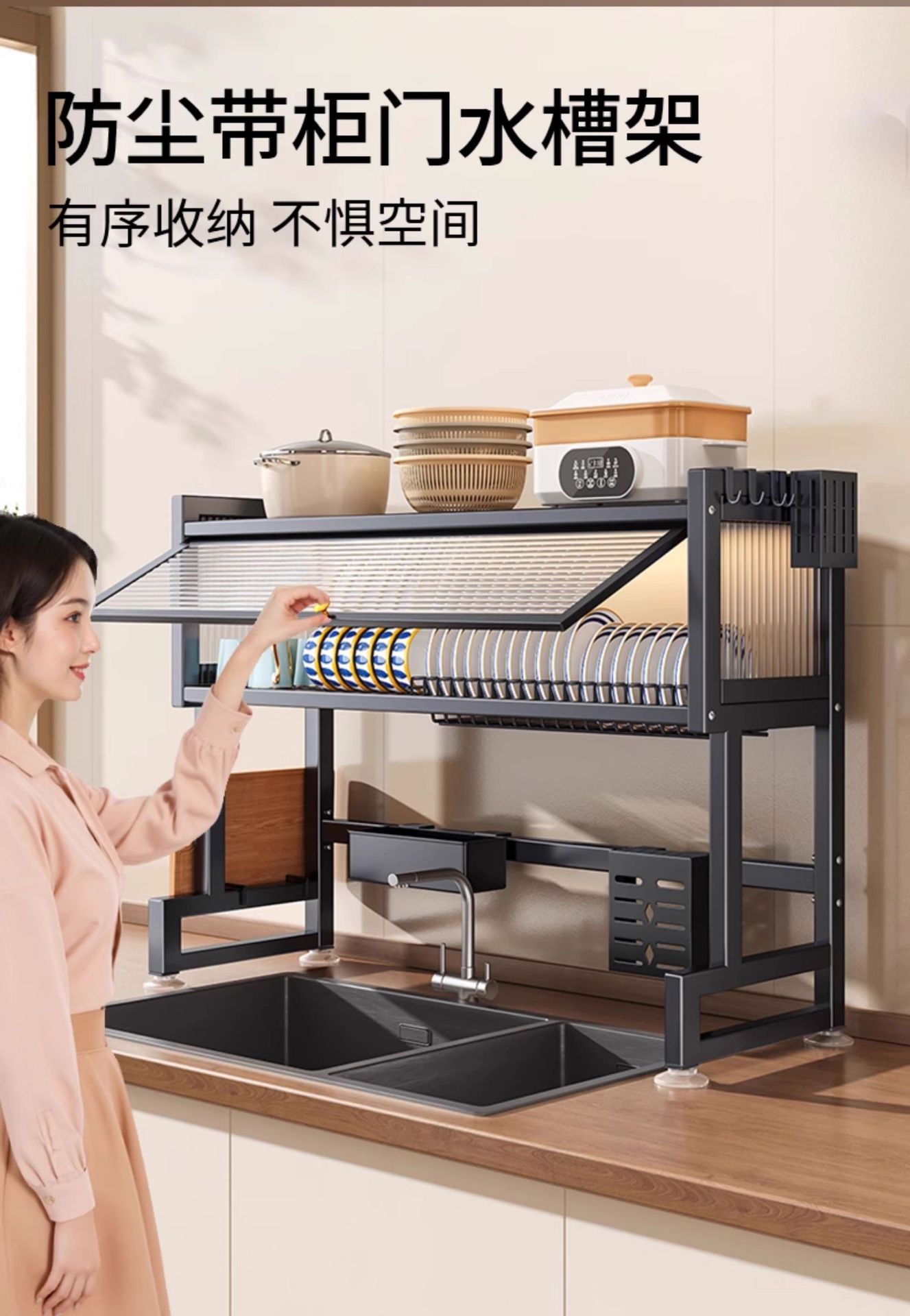 • 09_[블랙] 2단 세탁기 수납장(도어포함) (확장형)