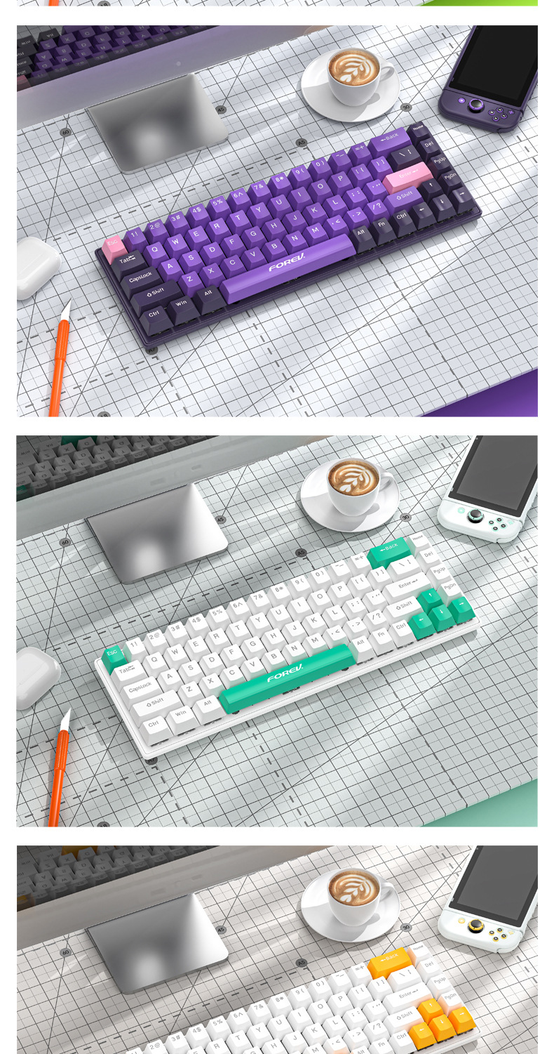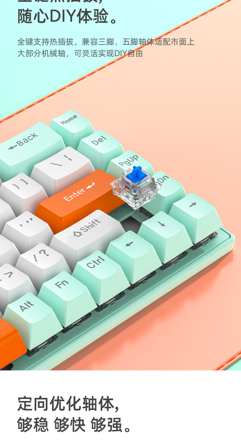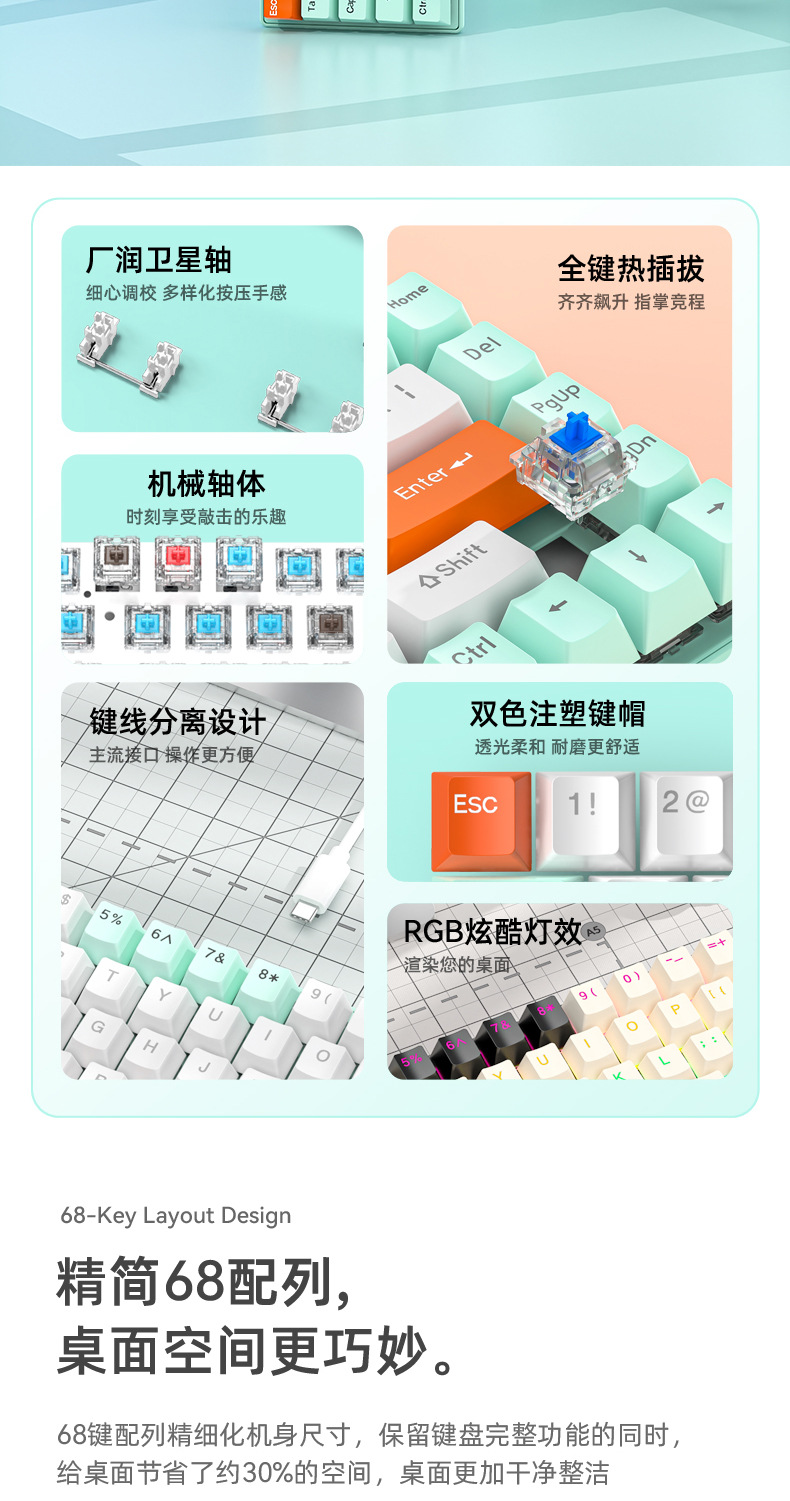 키보드 68키 위성축 레드축 차축 핫스왑 데스크탑 컴퓨터 범용 RGB USB 연결 키캡 게이밍 기계식