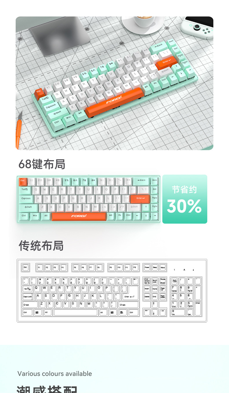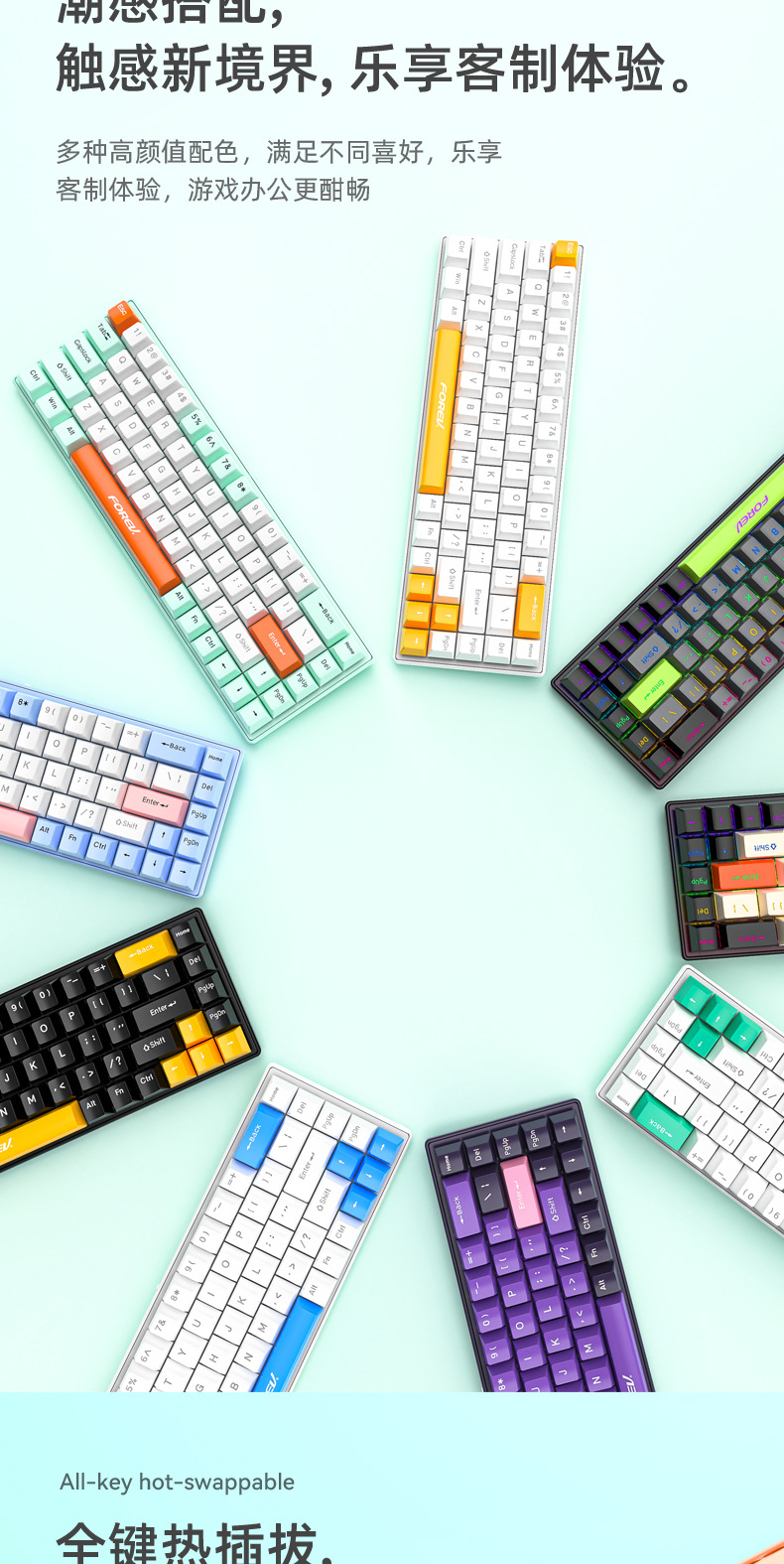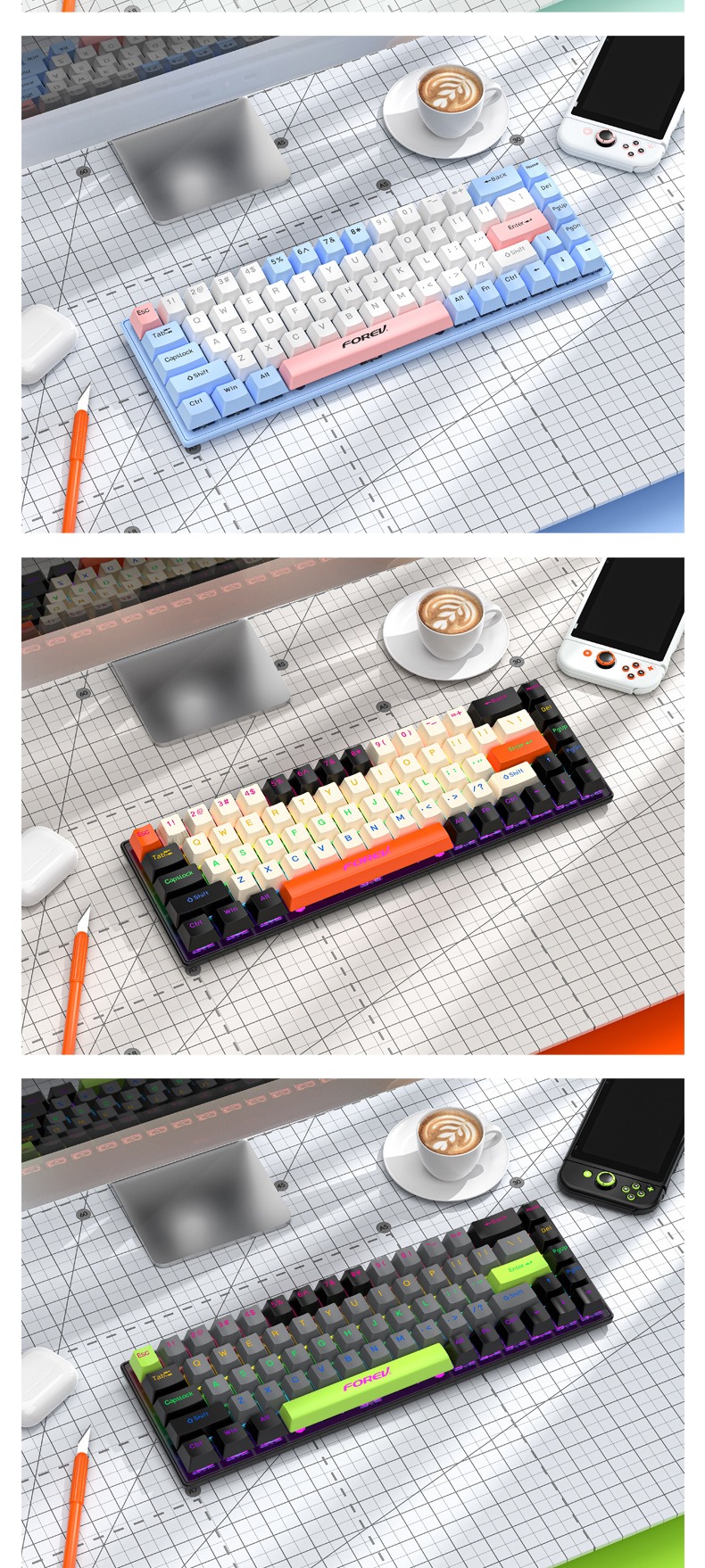 키보드 68키 위성축 레드축 차축 핫스왑 데스크탑 컴퓨터 범용 RGB USB 연결 키캡 게이밍 기계식