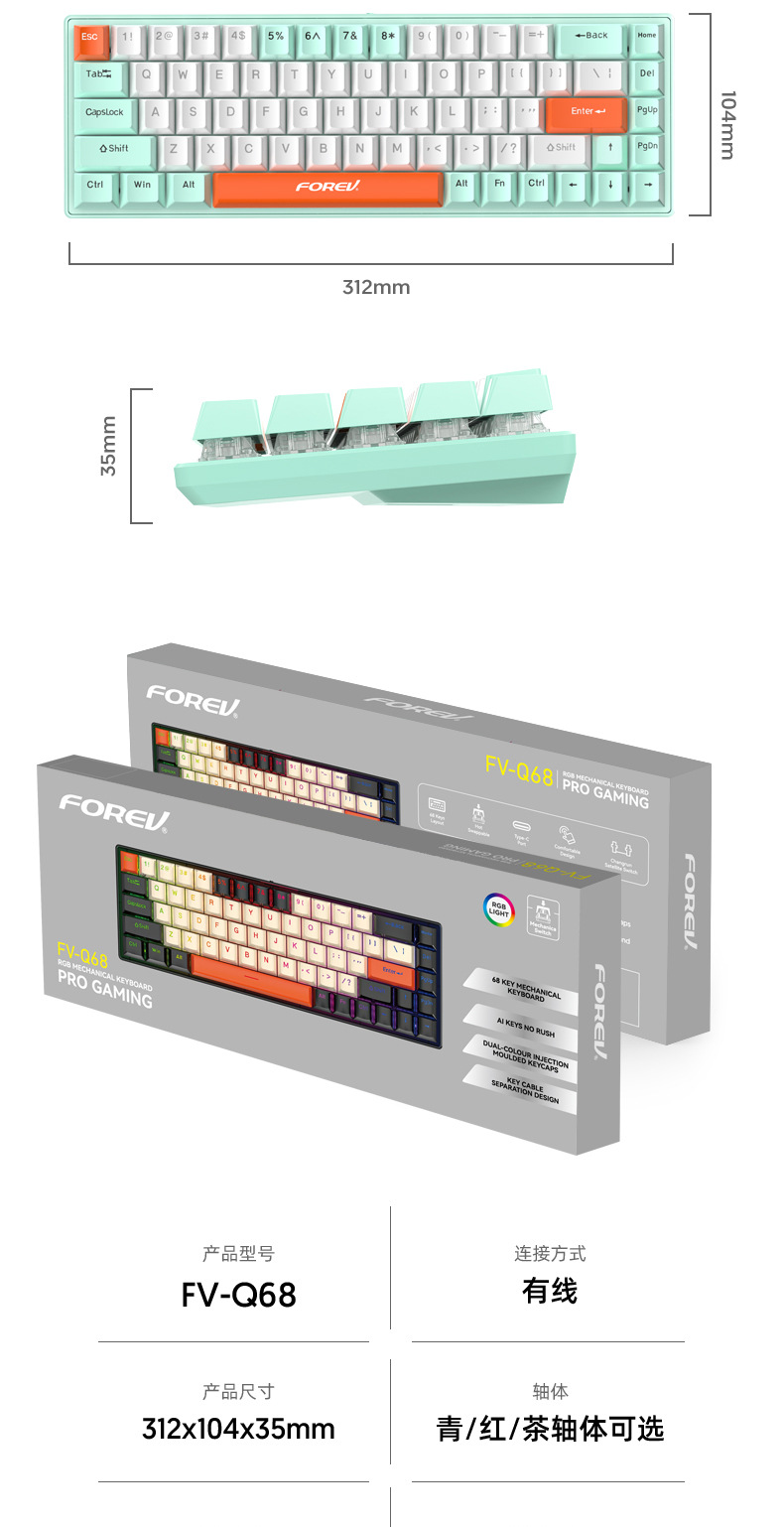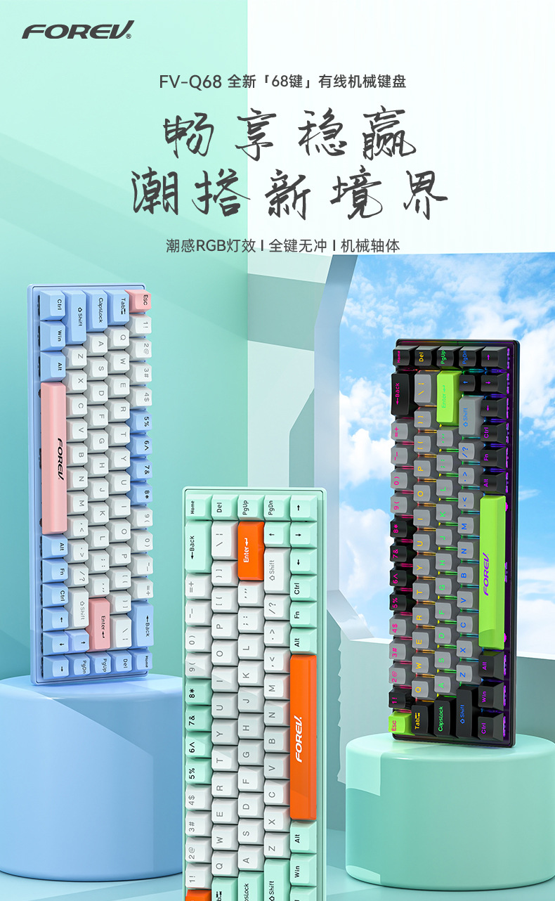 키보드 68키 위성축 레드축 차축 핫스왑 데스크탑 컴퓨터 범용 RGB USB 연결 키캡 게이밍 기계식스토어 가기