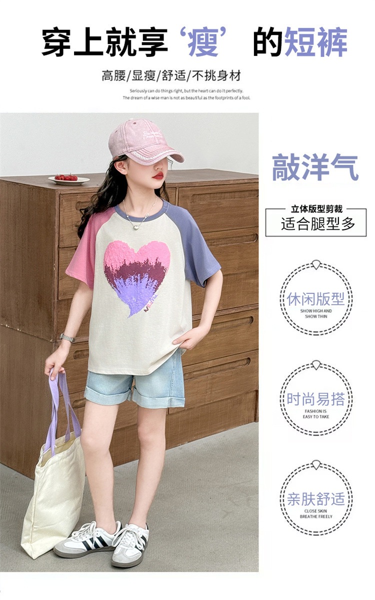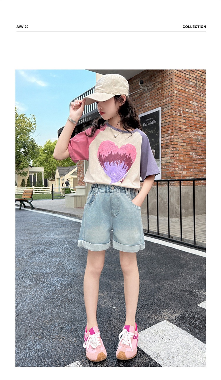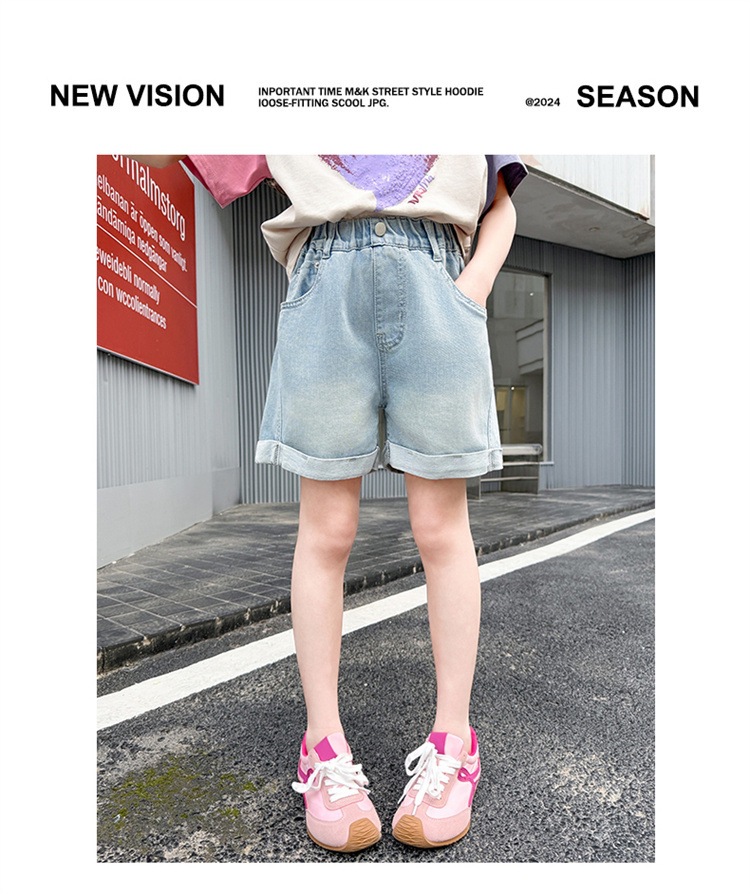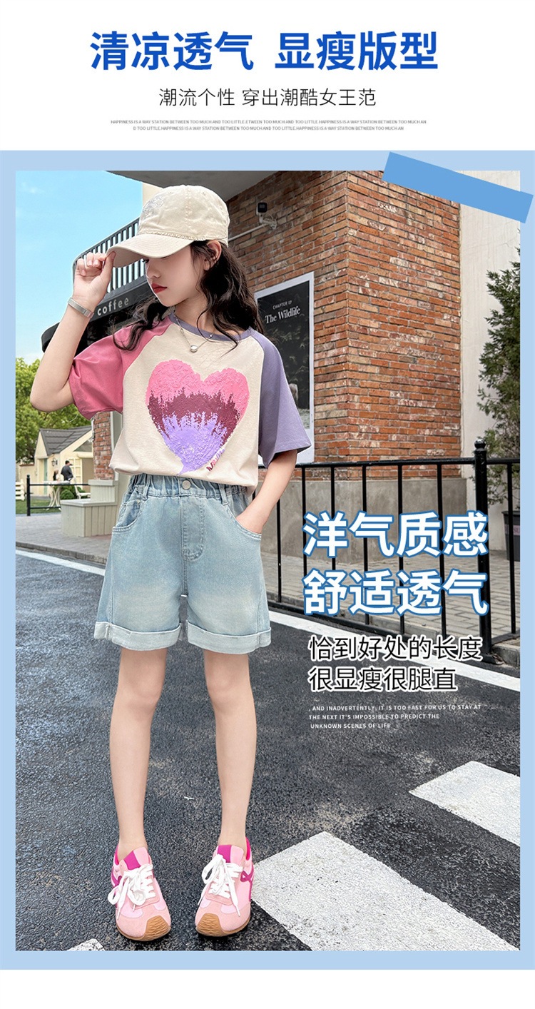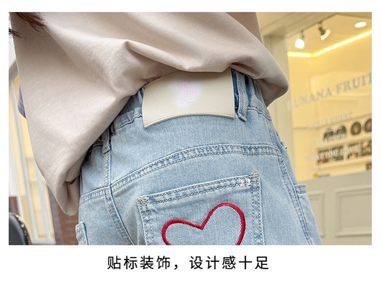 여자 데님 반바지 2025 새로운 여름 스타일 어린 소녀 유행 뒷주머니 사랑 자수 얇은 핫 팬츠 유행스토어 가기