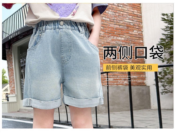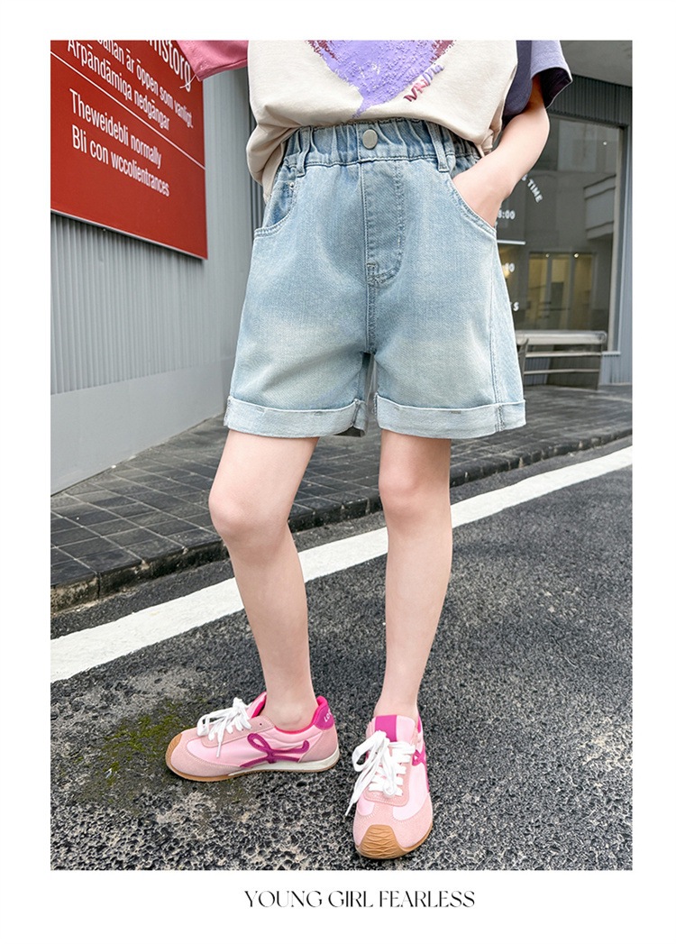 여자 데님 반바지 2025 새로운 여름 스타일 어린 소녀 유행 뒷주머니 사랑 자수 얇은 핫 팬츠 유행