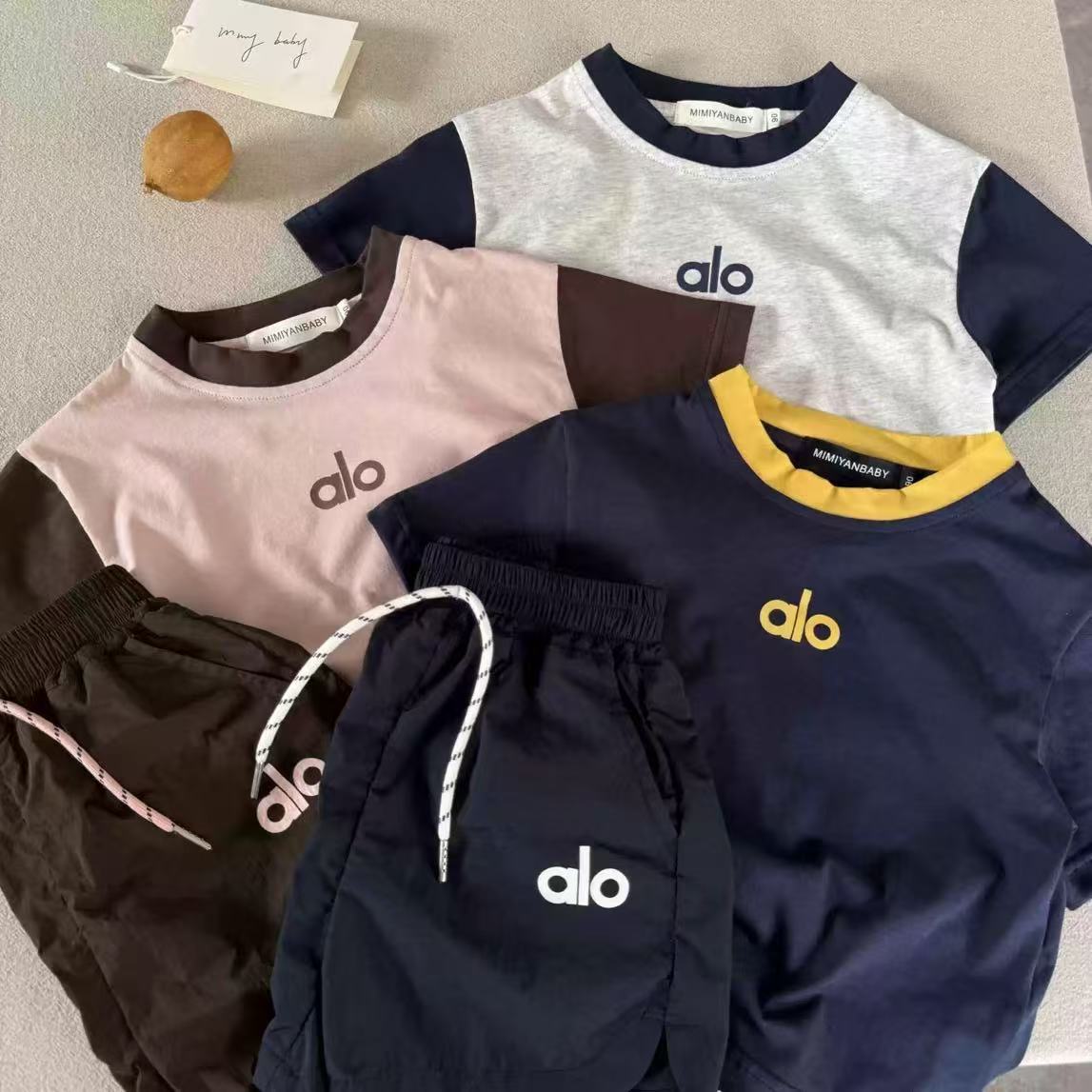아동 여름복 세트 2026년형 남아 여아 얇은 캐주얼 투피스 세트 아기용 레터링 반팔 반바지 통기성스토어 가기