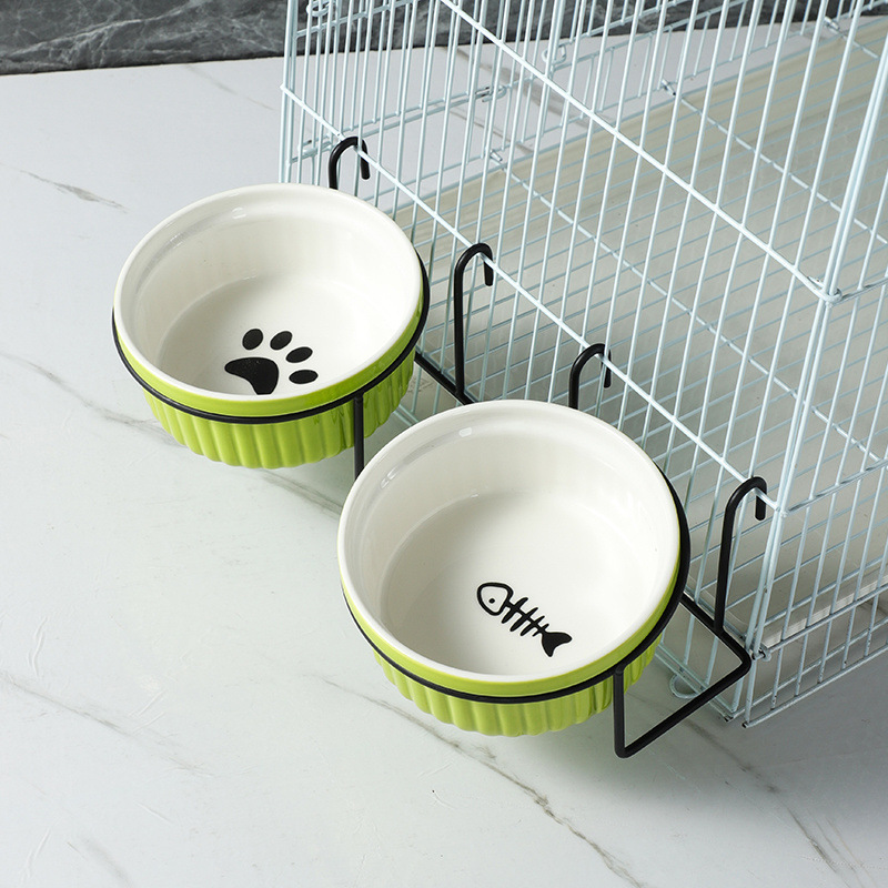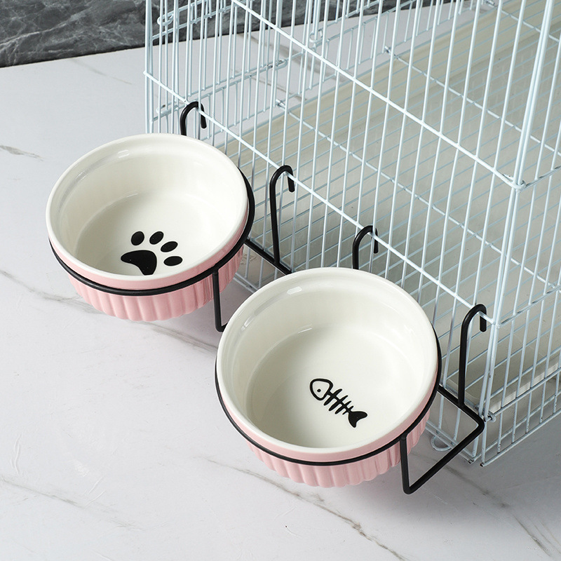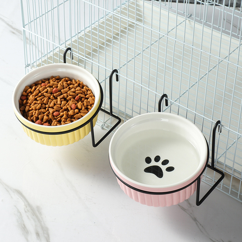 걸이형 고양이 그릇, 케이지 걸이형 고양이 밥 그릇, 작은 토끼 고양이 그릇, 세라믹 고양이 사료 밥 그릇, 걸이형 고양이 그릇, 개 그릇