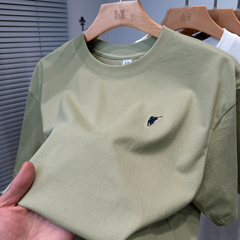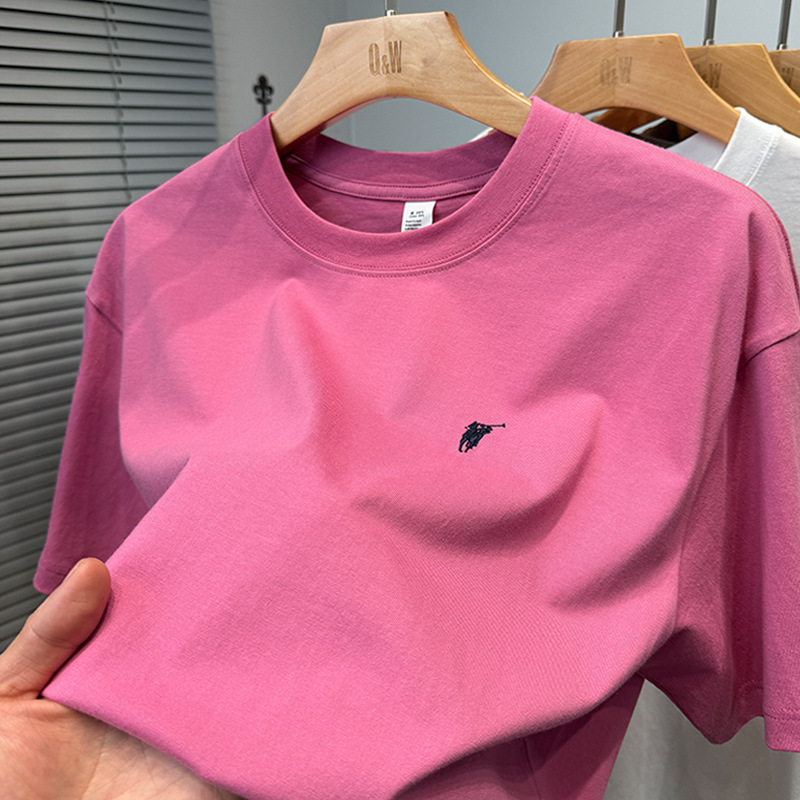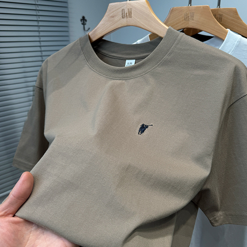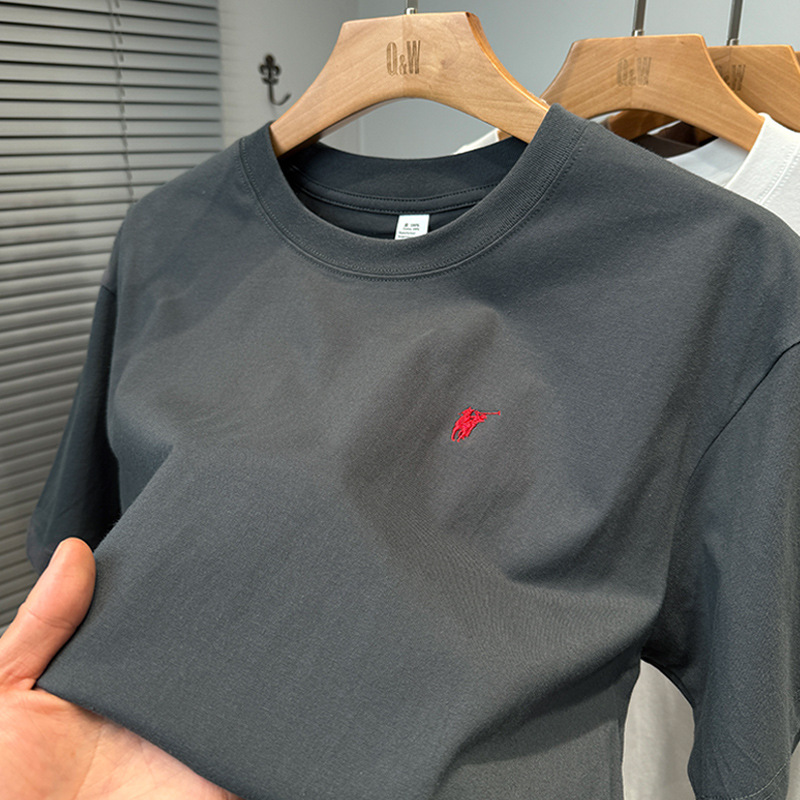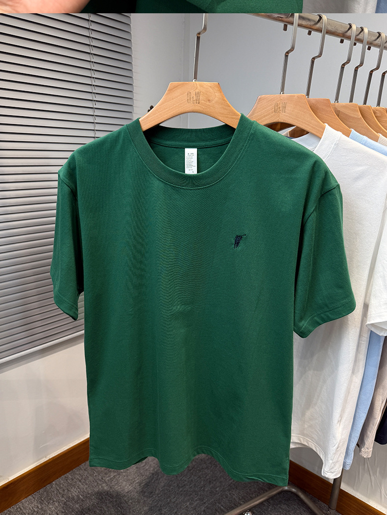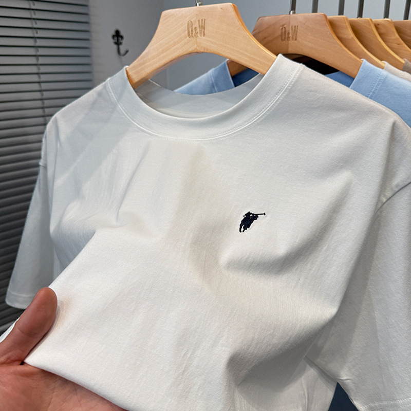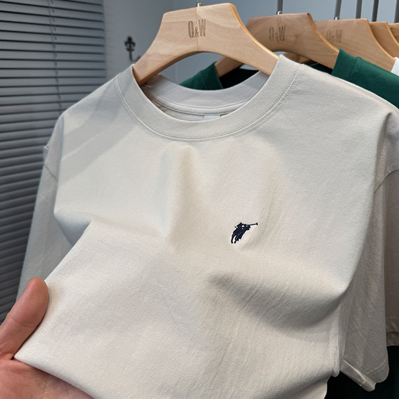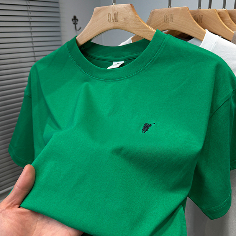 하이 엔드 폴 순수 코튼 반팔 티셔츠 남성 여름 2025 새로운 느슨한 라운드 넥 솔리드 컬러 반팔 탑 남성용스토어 가기