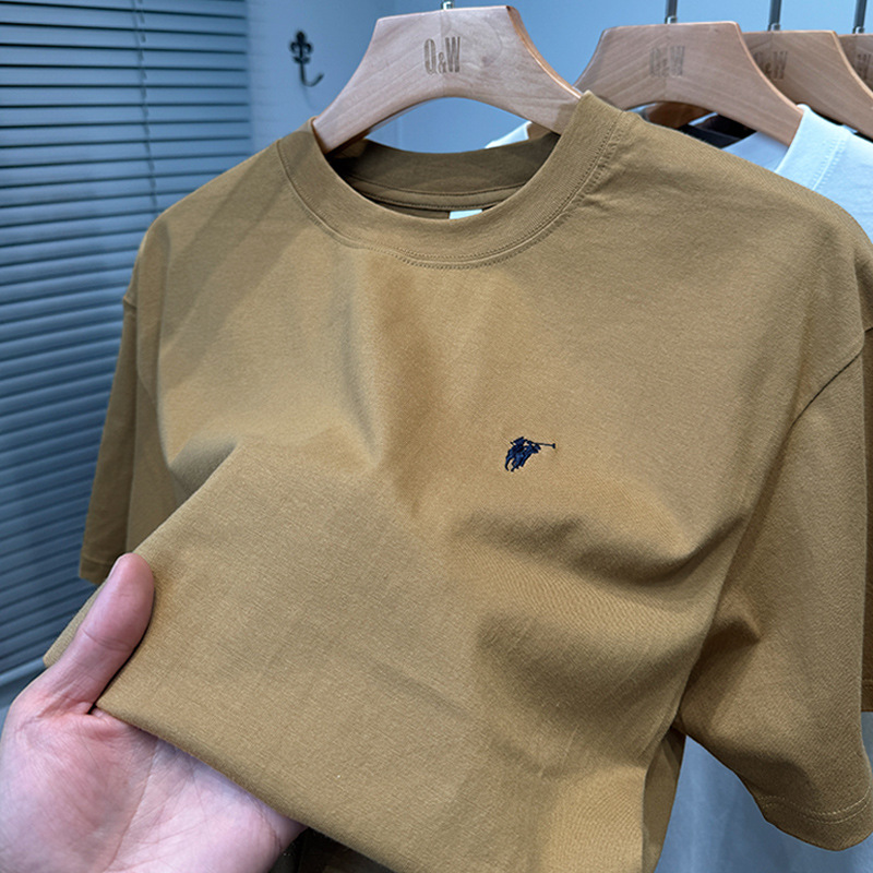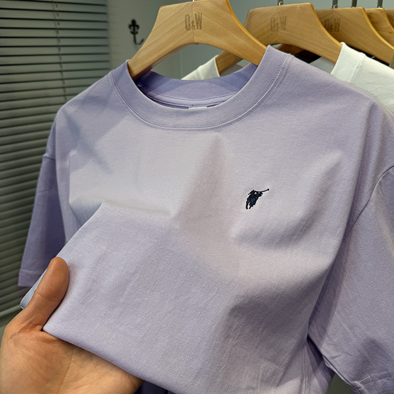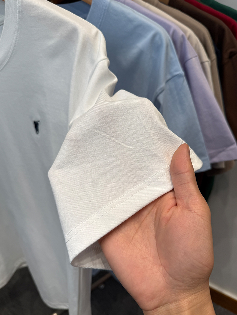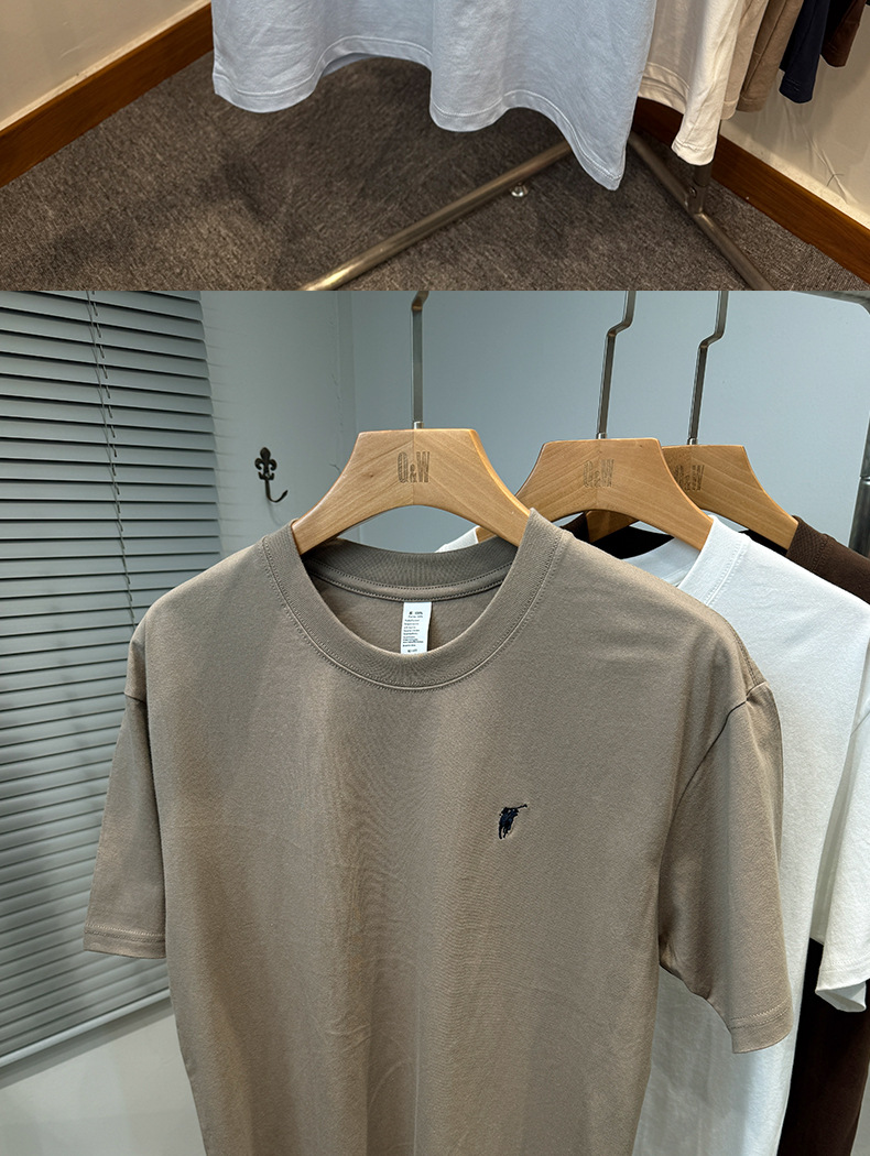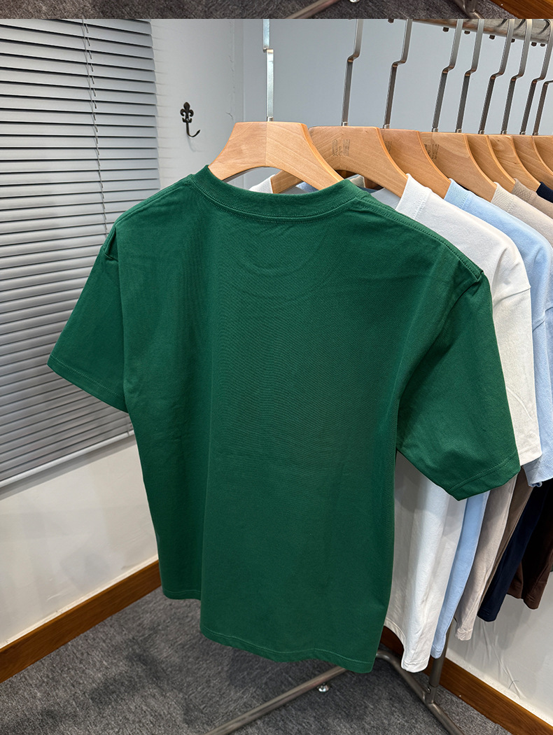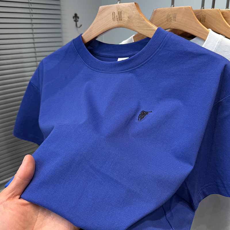 하이 엔드 폴 순수 코튼 반팔 티셔츠 남성 여름 2025 새로운 느슨한 라운드 넥 솔리드 컬러 반팔 탑 남성용스토어 가기