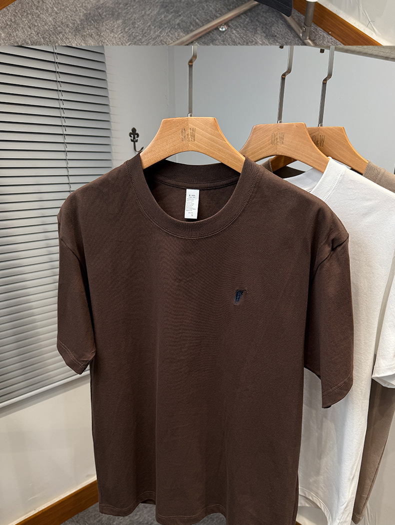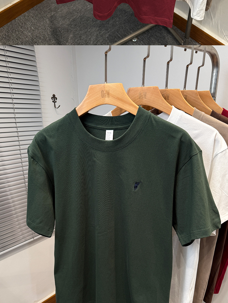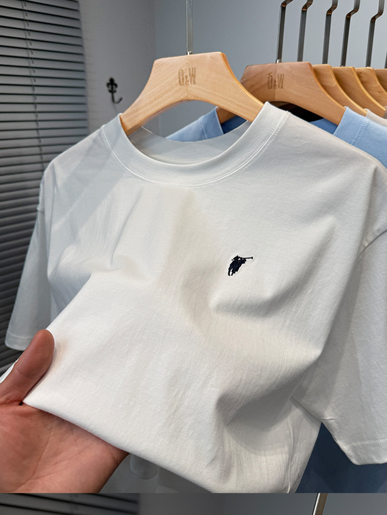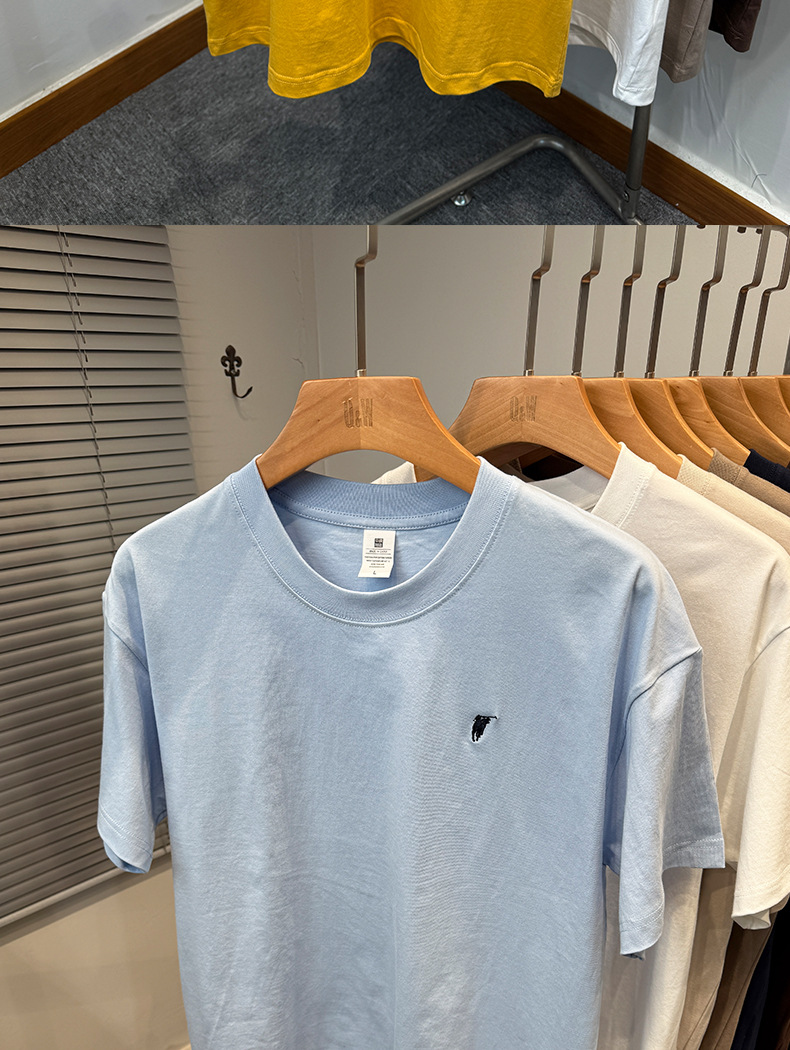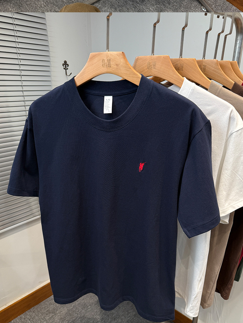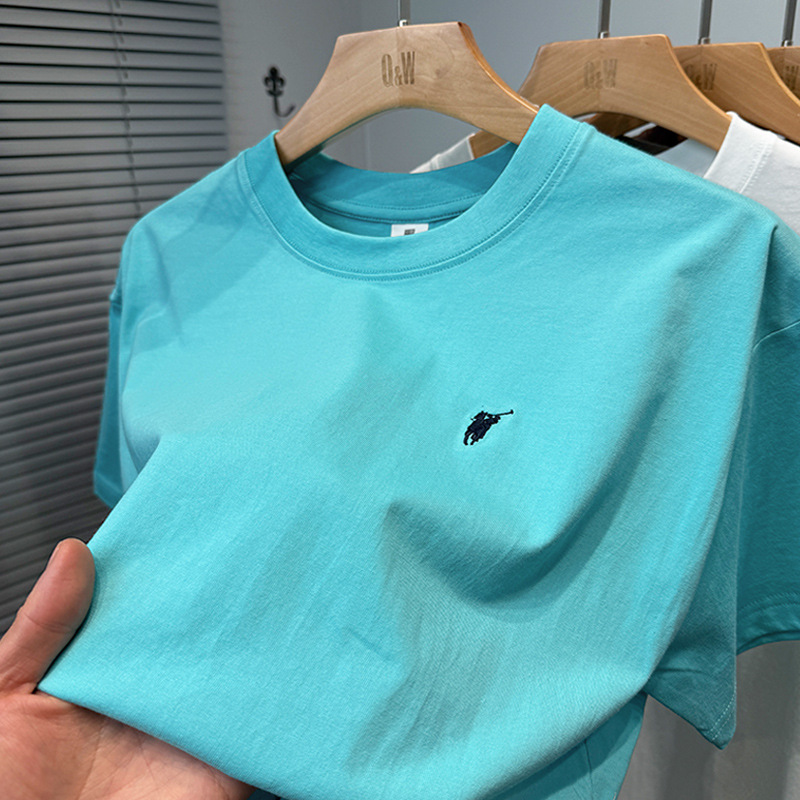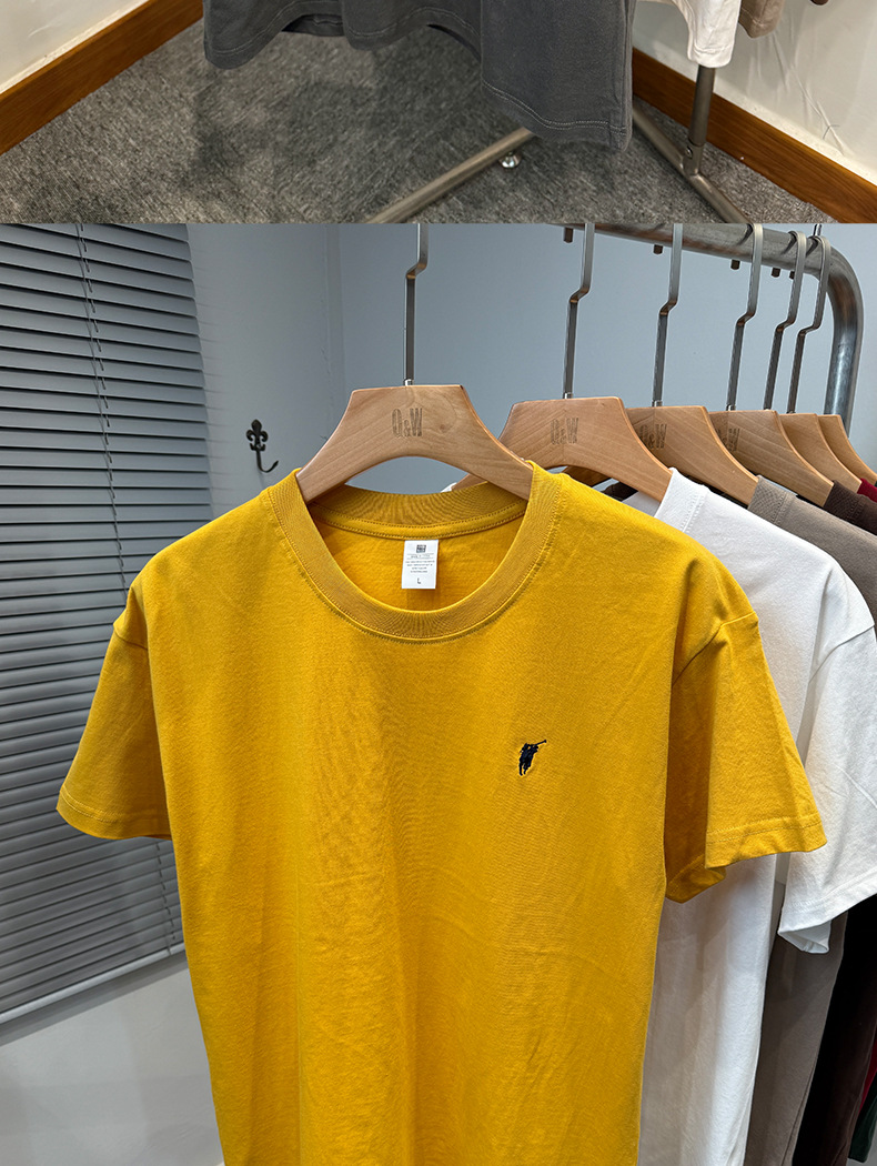 하이 엔드 폴 순수 코튼 반팔 티셔츠 남성 여름 2025 새로운 느슨한 라운드 넥 솔리드 컬러 반팔 탑 남성용스토어 가기