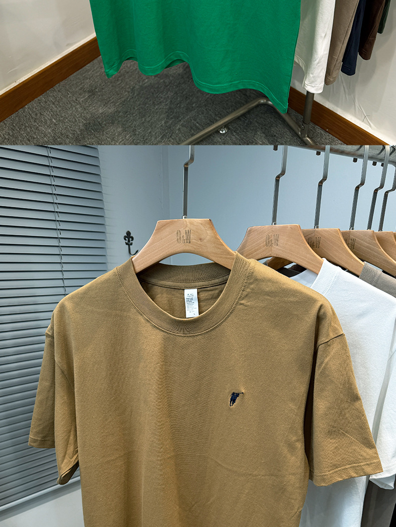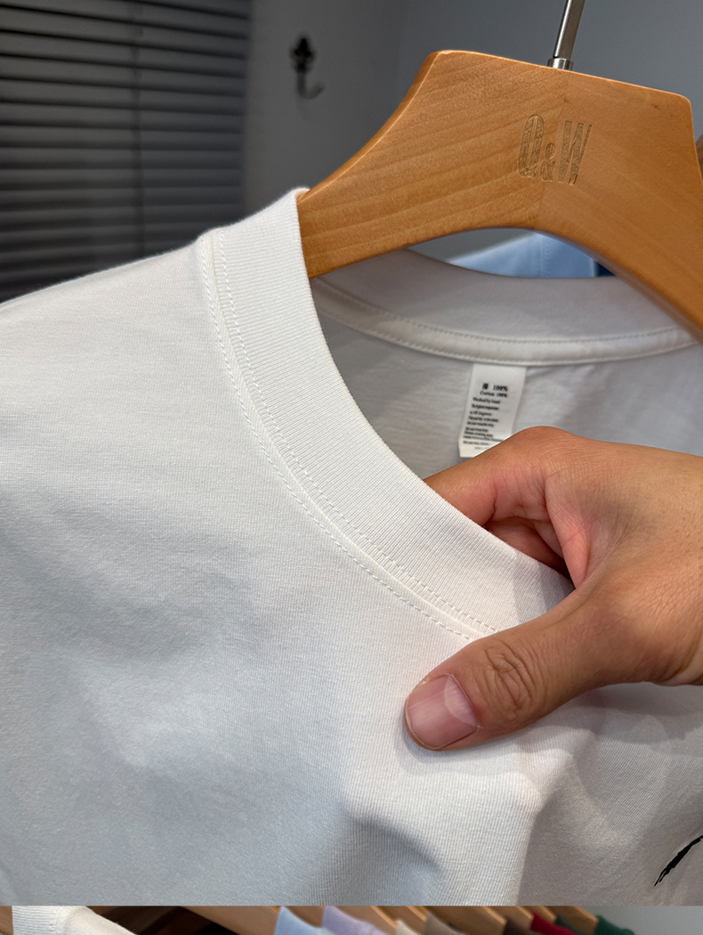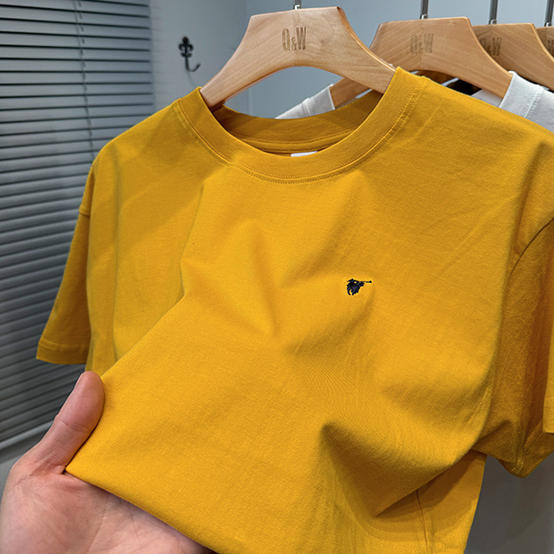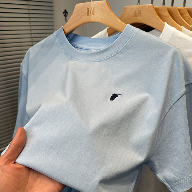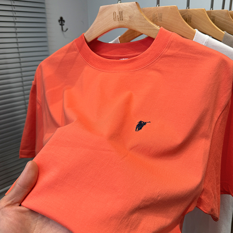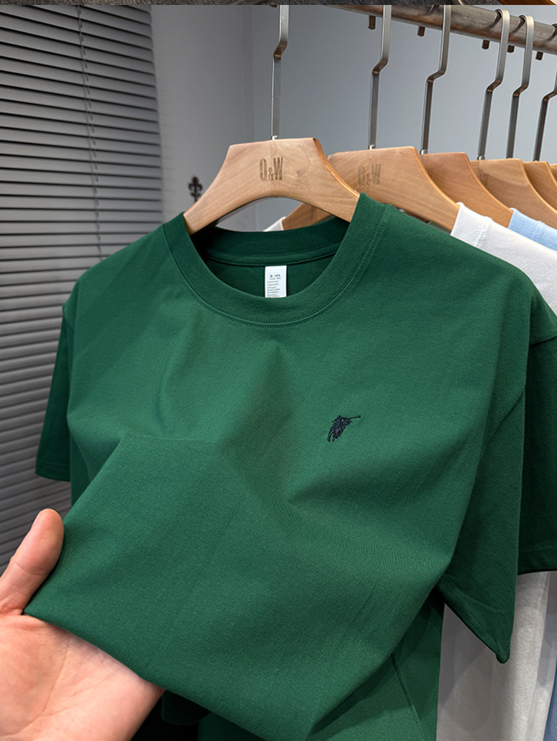 하이 엔드 폴 순수 코튼 반팔 티셔츠 남성 여름 2025 새로운 느슨한 라운드 넥 솔리드 컬러 반팔 탑 남성용스토어 가기