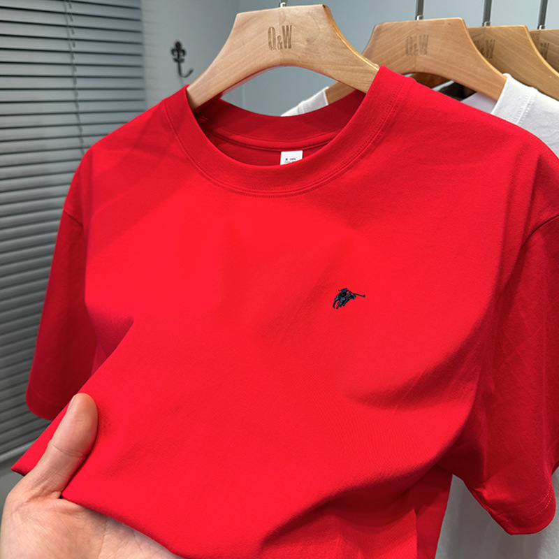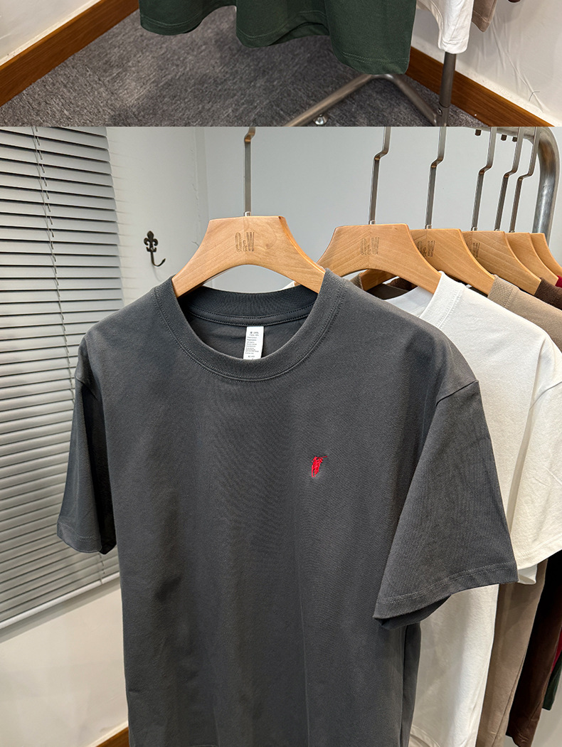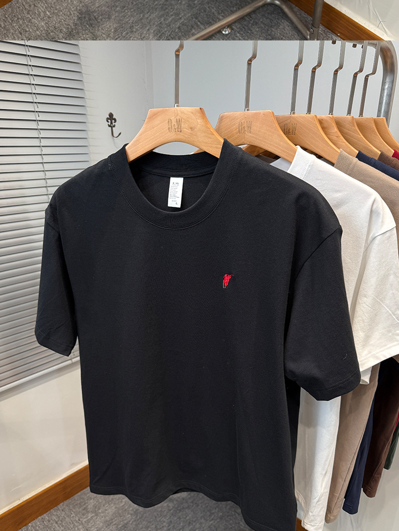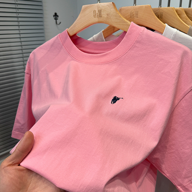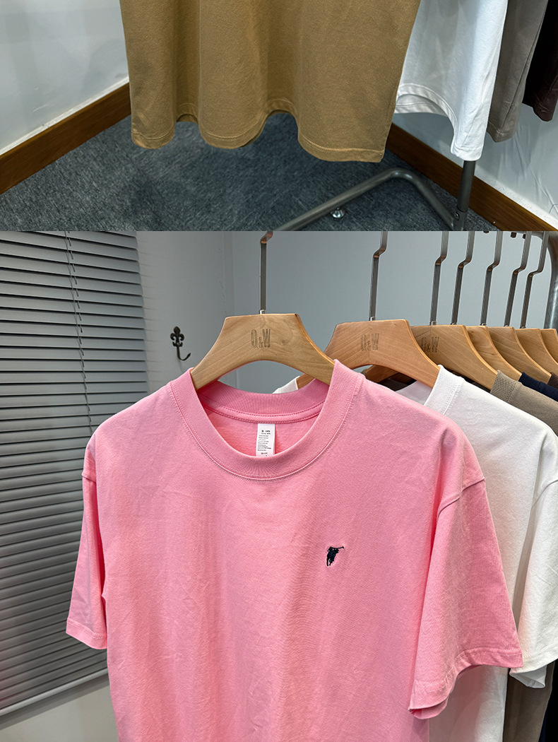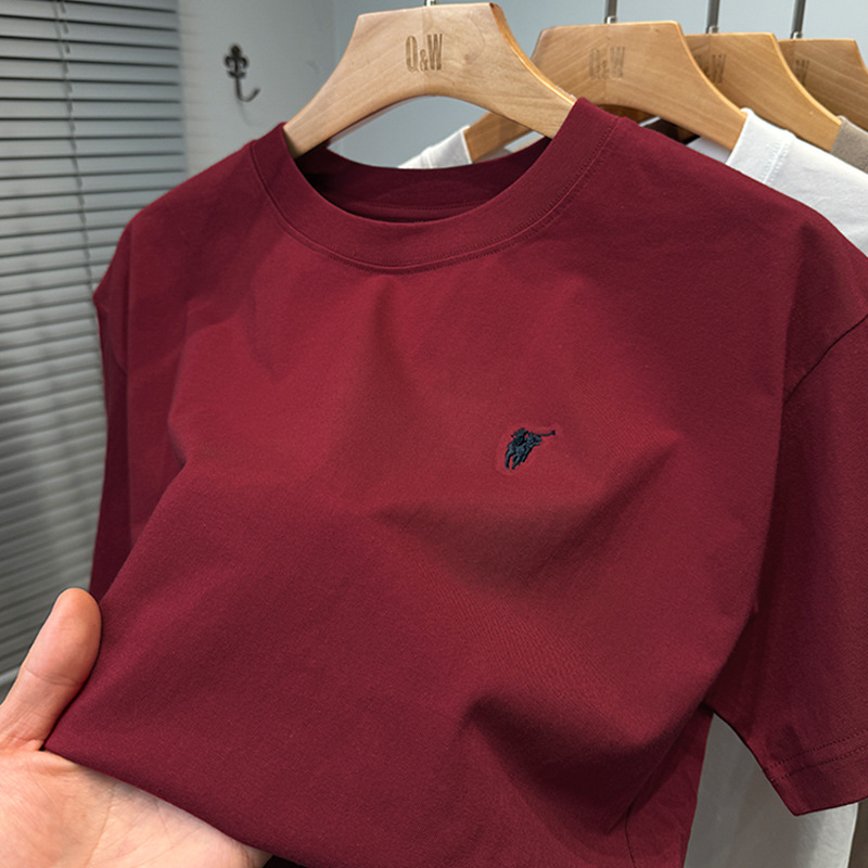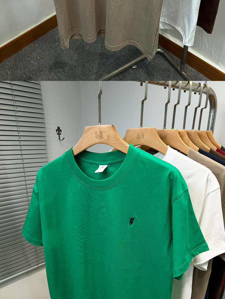 하이 엔드 폴 순수 코튼 반팔 티셔츠 남성 여름 2025 새로운 느슨한 라운드 넥 솔리드 컬러 반팔 탑 남성용스토어 가기