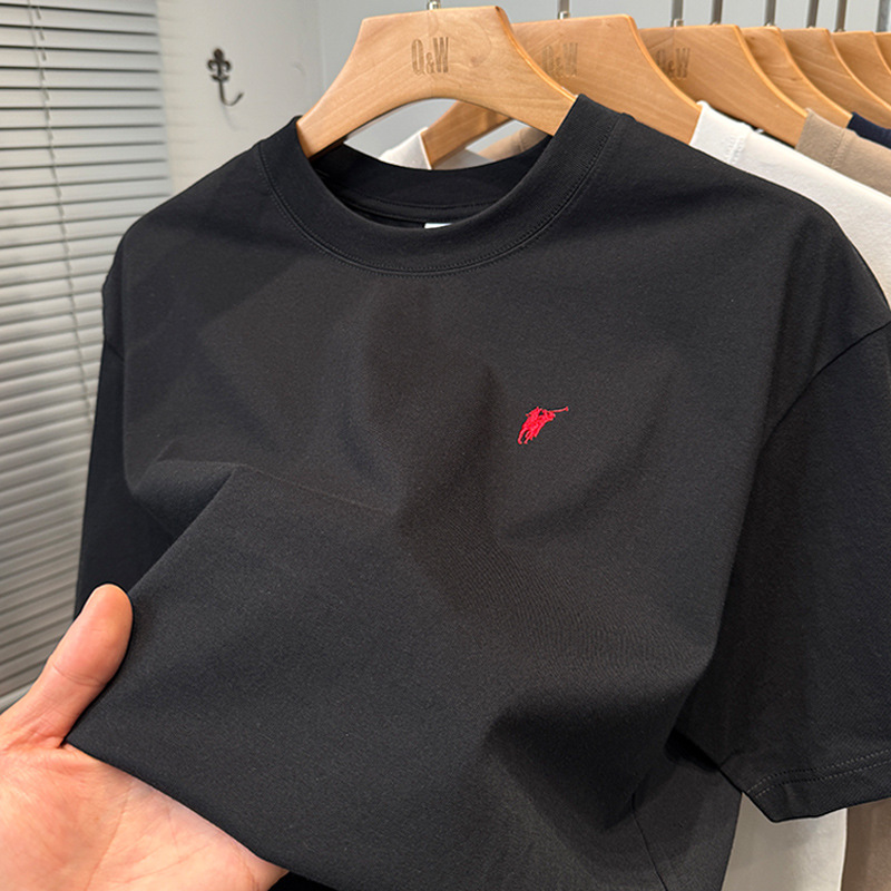 하이 엔드 폴 순수 코튼 반팔 티셔츠 남성 여름 2025 새로운 느슨한 라운드 넥 솔리드 컬러 반팔 탑 남성용