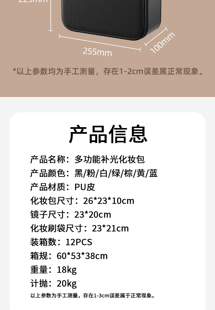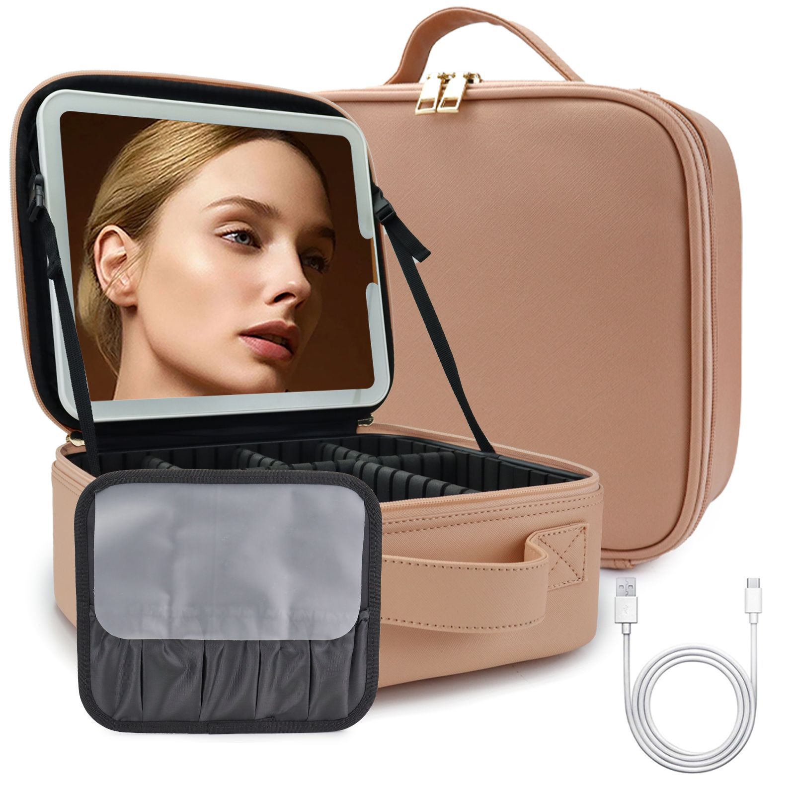 여성을위한 고급 LED 거울 여행 화장품 가방 휴대용 대용량 메이크업 브러쉬 케이스 휴대용 파티션 뷰티 가방스토어 가기