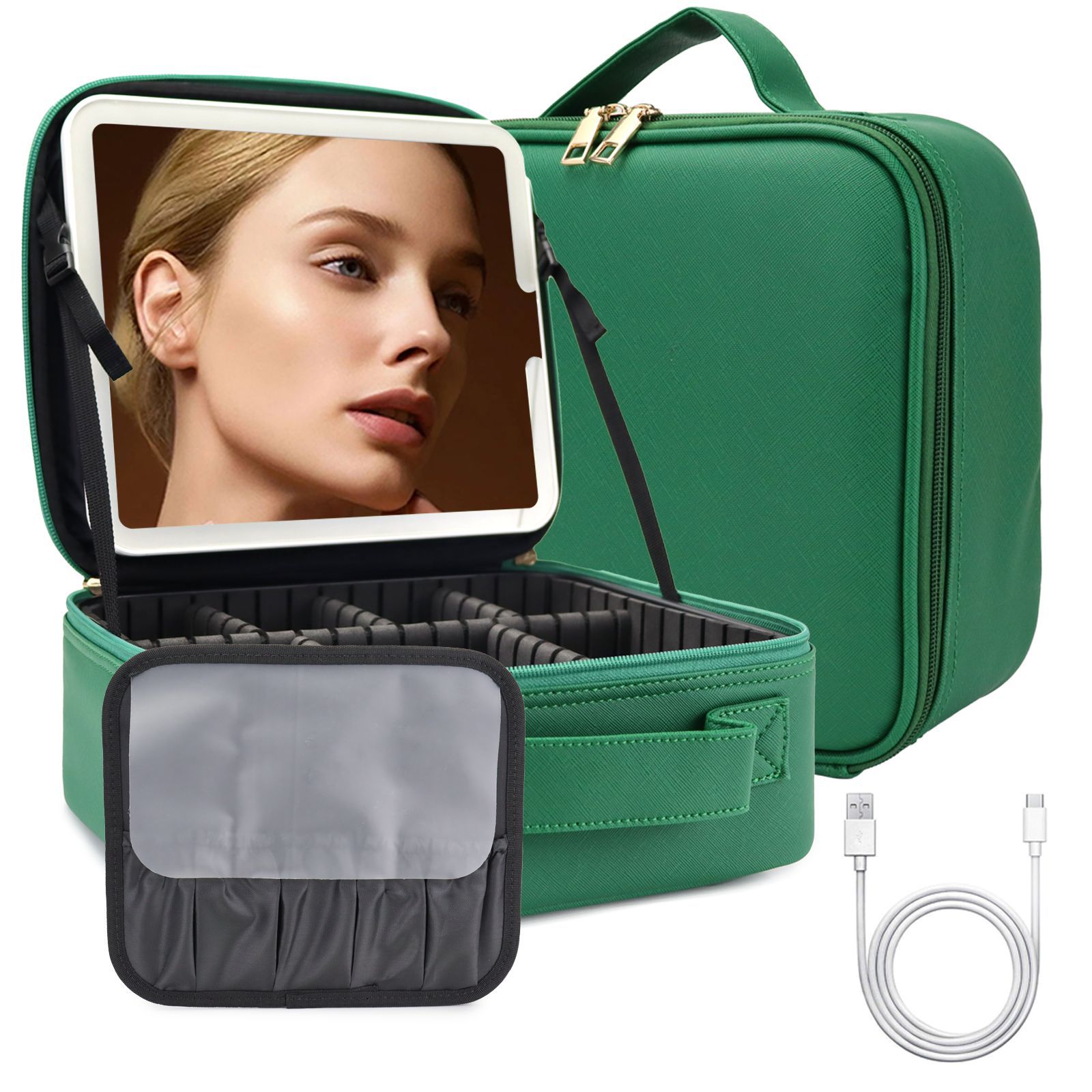 • 에메랄드 그린-(확대) [업그레이드된 LED 3색 풀 HD 거울(탈부착 가능)☆무료 브러쉬 버전☆상자를 두껍게 만드세요]