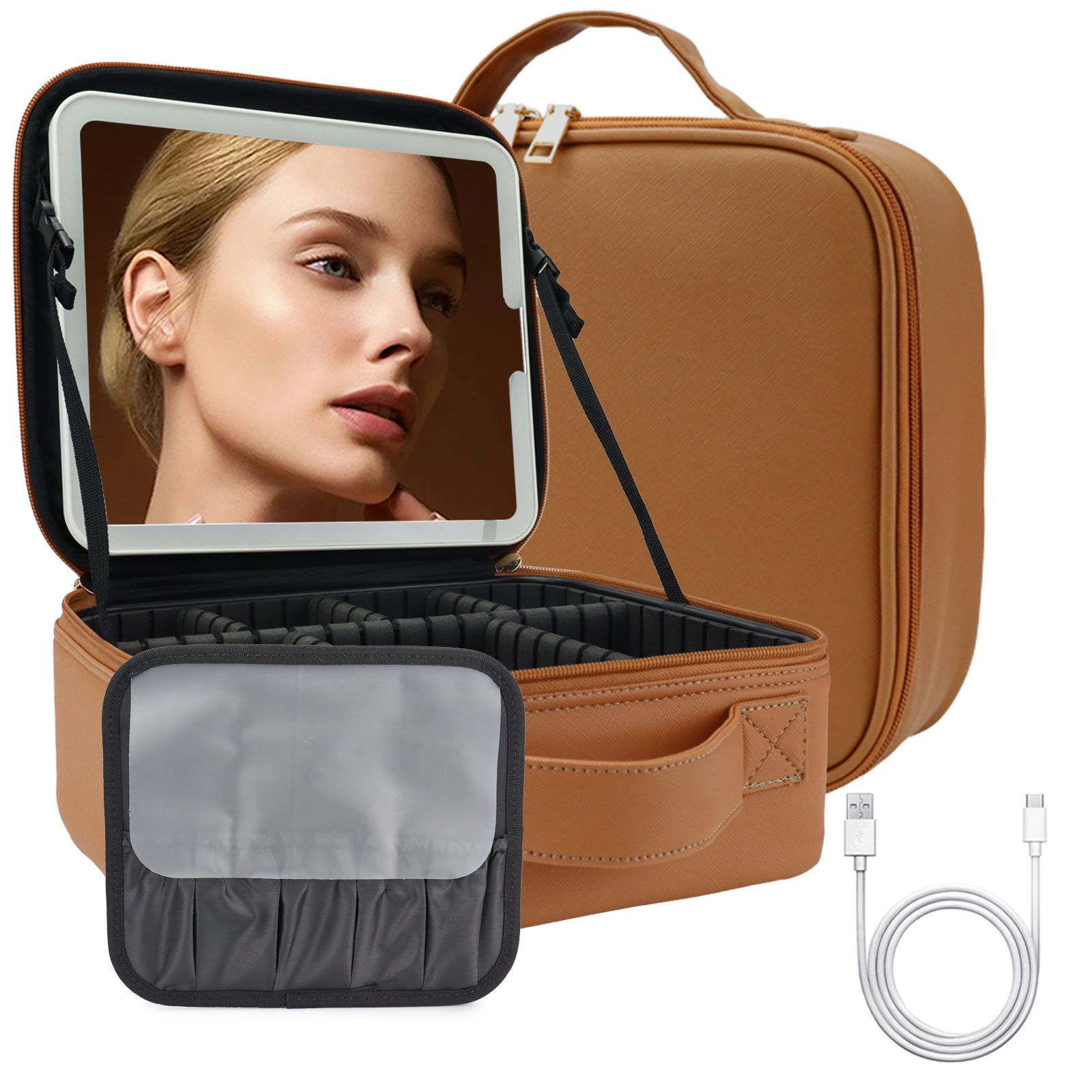 • 브라운 오렌지-(확대) [업그레이드된 LED 3색 풀 HD 미러(탈착 가능)☆무료 브러시 버전☆상자가 두꺼워졌습니다.]