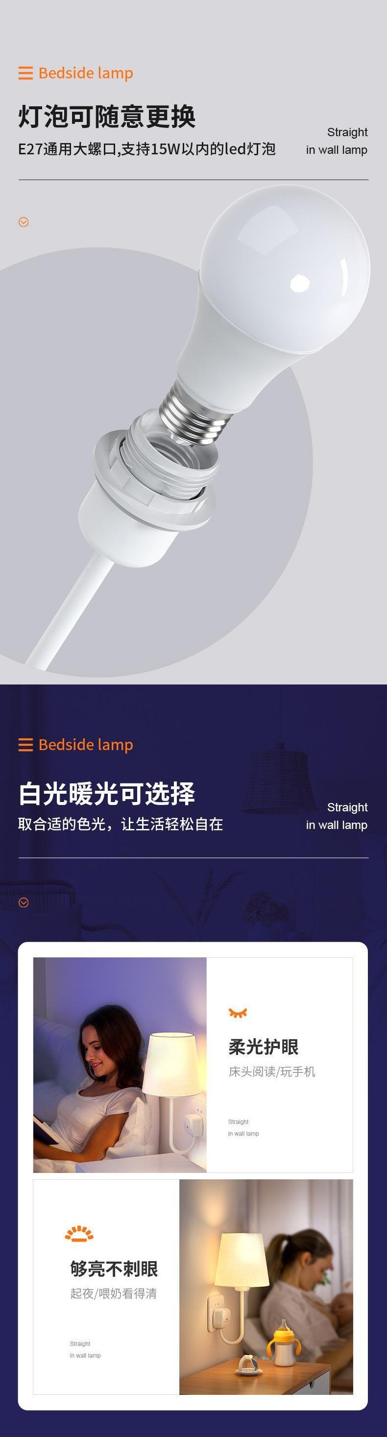 야간 조명 플러그인 배선이 필요 없는 벽 램프 설치가 필요 없는 펀치 없는 침대 옆 램프 배선이 필요 없는 간단한 소켓형 야간 조명