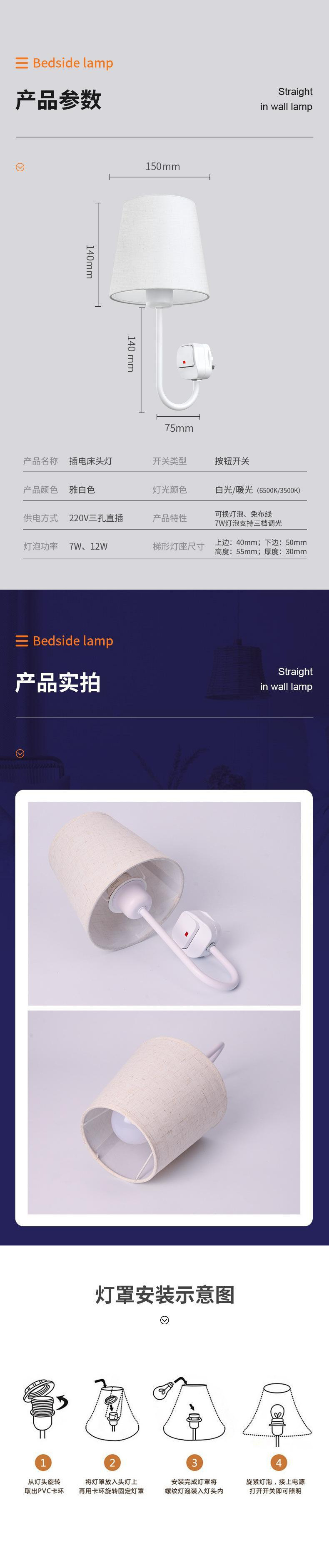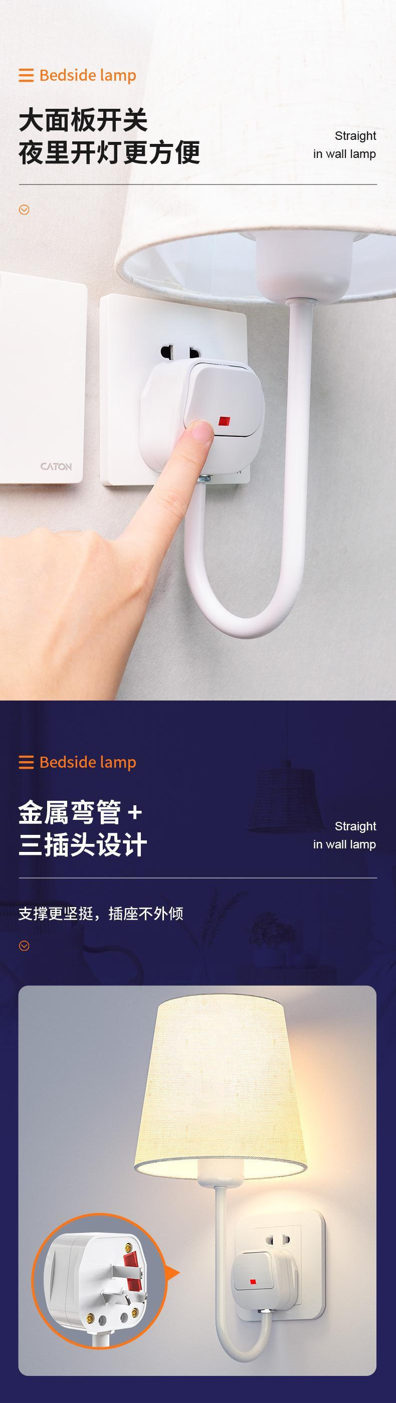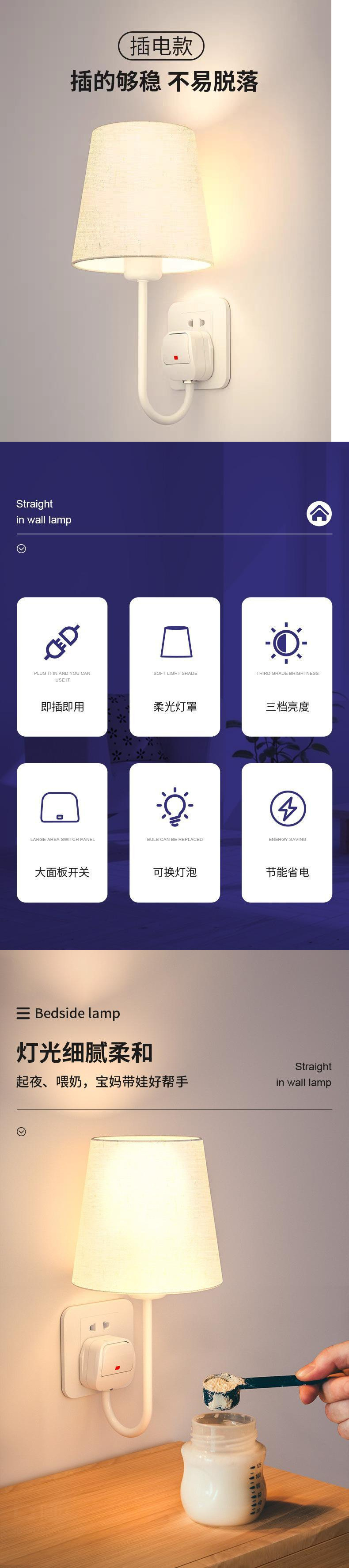 야간 조명 플러그인 배선이 필요 없는 벽 램프 설치가 필요 없는 펀치 없는 침대 옆 램프 배선이 필요 없는 간단한 소켓형 야간 조명스토어 가기