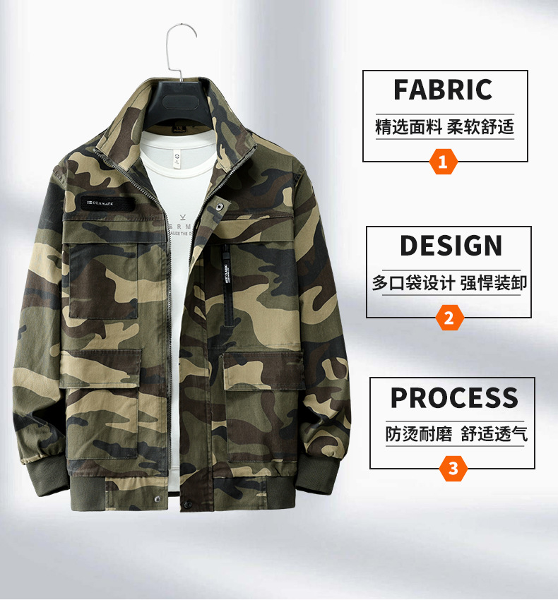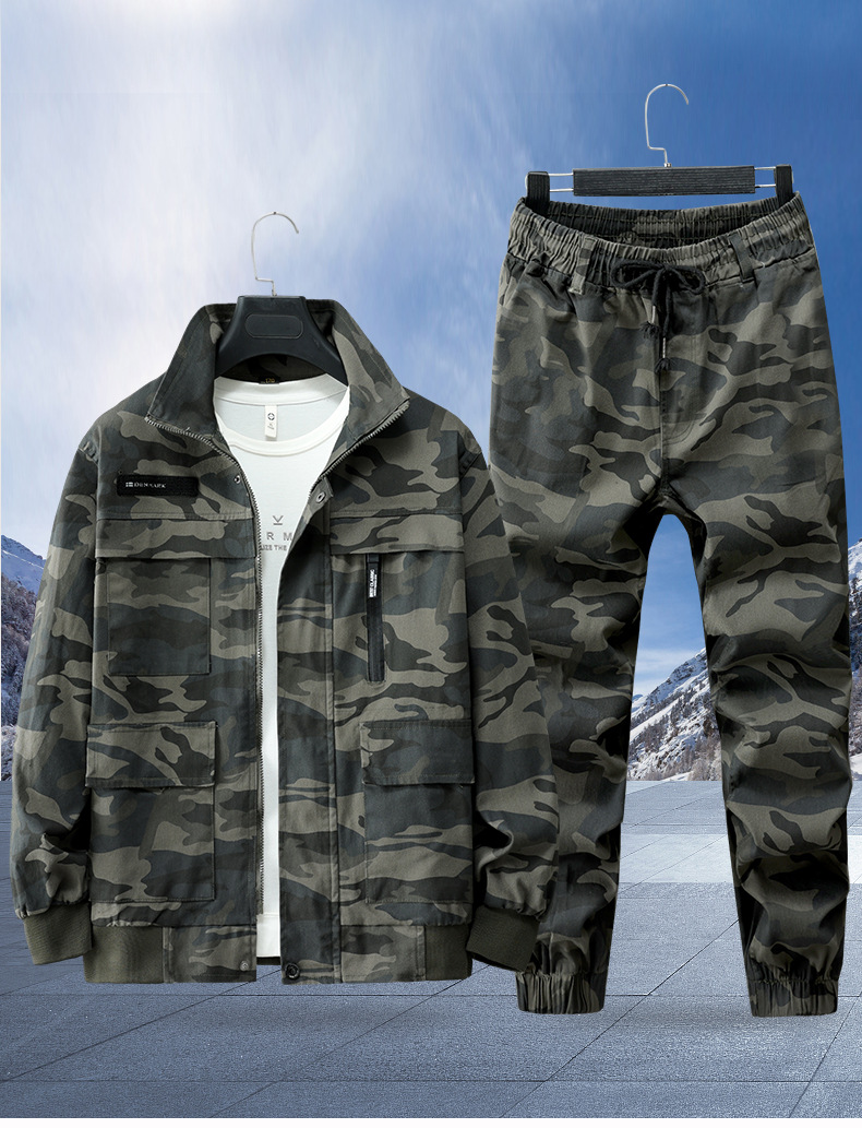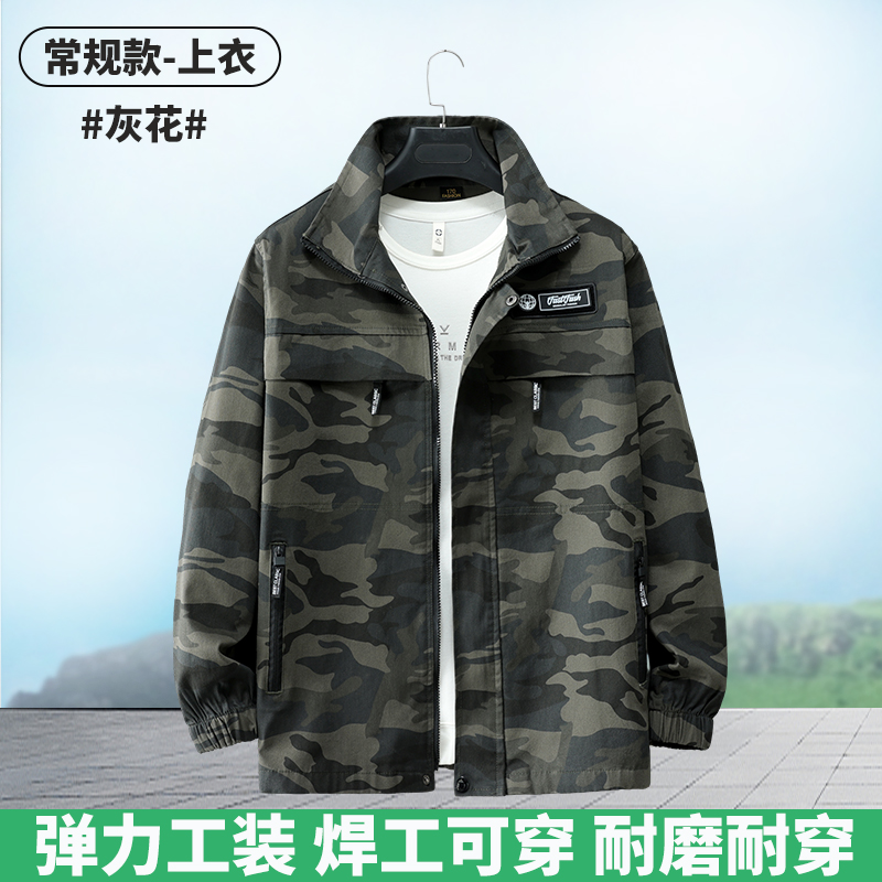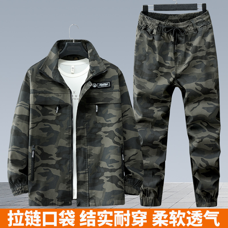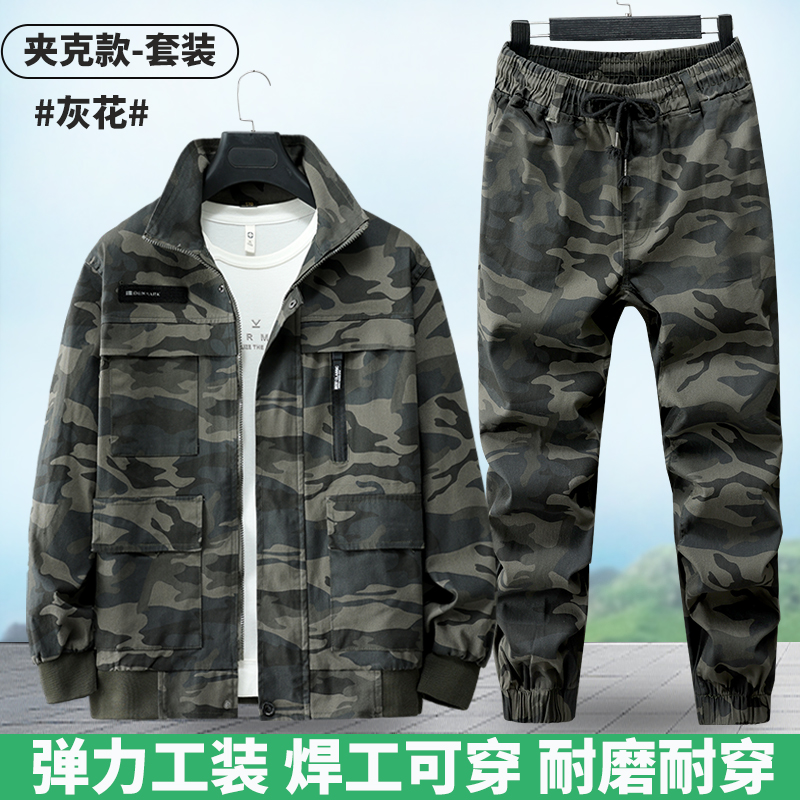 신축성 있는 위장복 남성복 봄, 가을 야외 작업복 내마모성 및 먼지 방지 노동 보호복 싱글 탑 및 싱글 바지스토어 가기