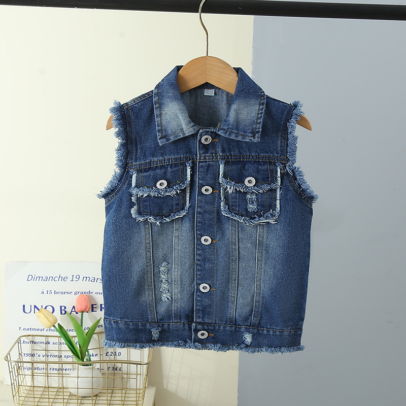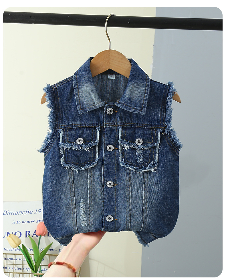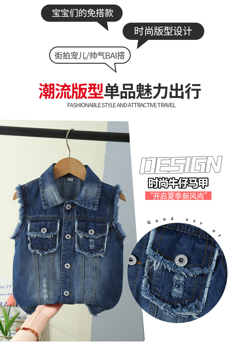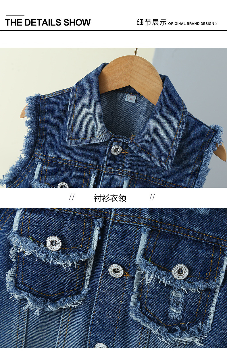 여아 데님 조끼 봄, 가을 2025 새로운 스타일 한국 스타일 민소매 조끼 조끼 탑 12세