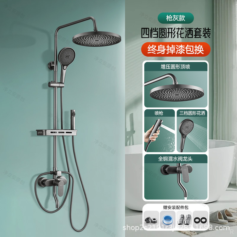 • 라이트 럭셔리 그레이 [올 구리●4단계 물 배출구】원형 샤워 세트●10년 보증