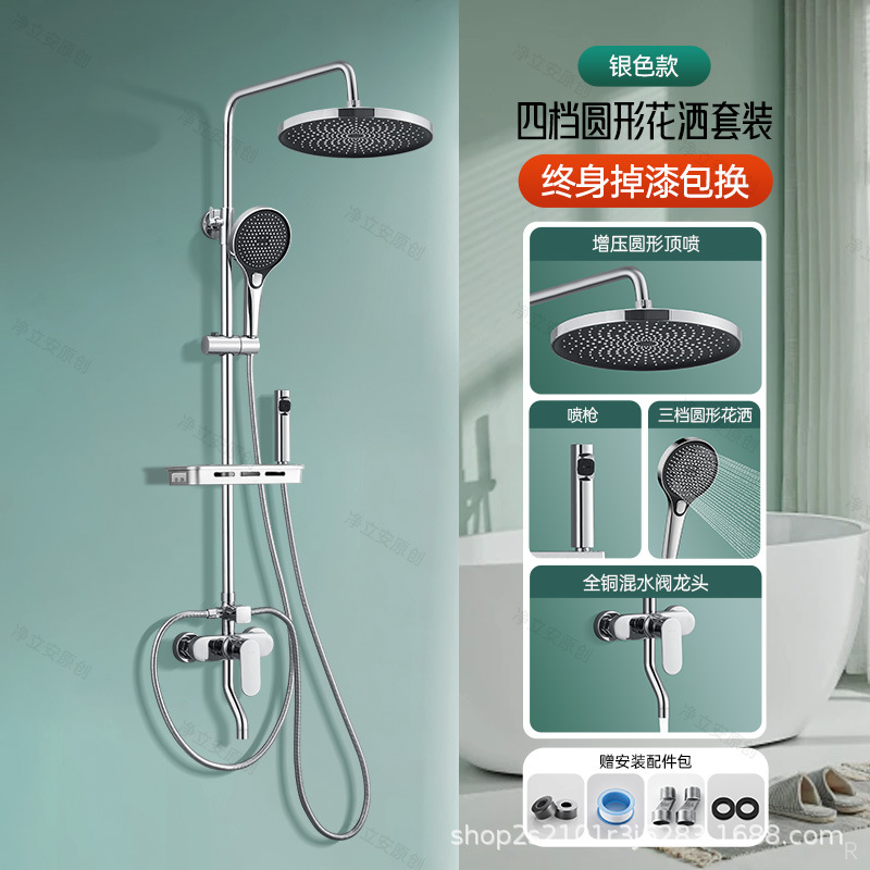 • 심플 실버[모두 구리●4단계 물 배출구】원형 샤워 세트●10년 보증