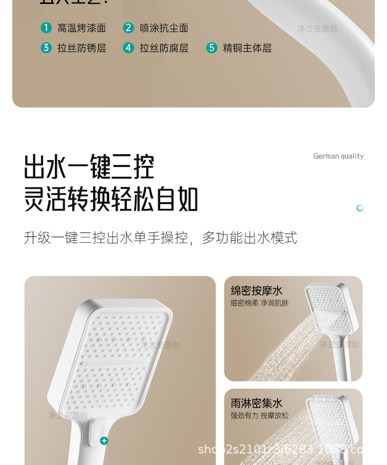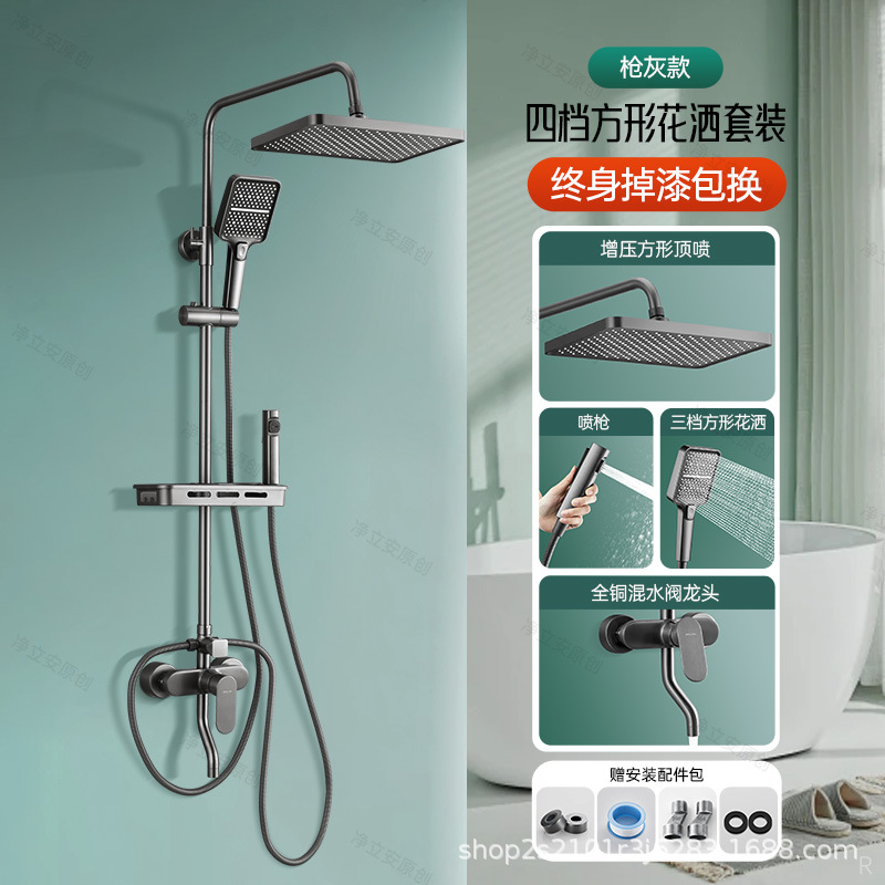 • 라이트 럭셔리 그레이 [올 구리●4단계 물 배출구】사각 샤워 세트●10년 보증