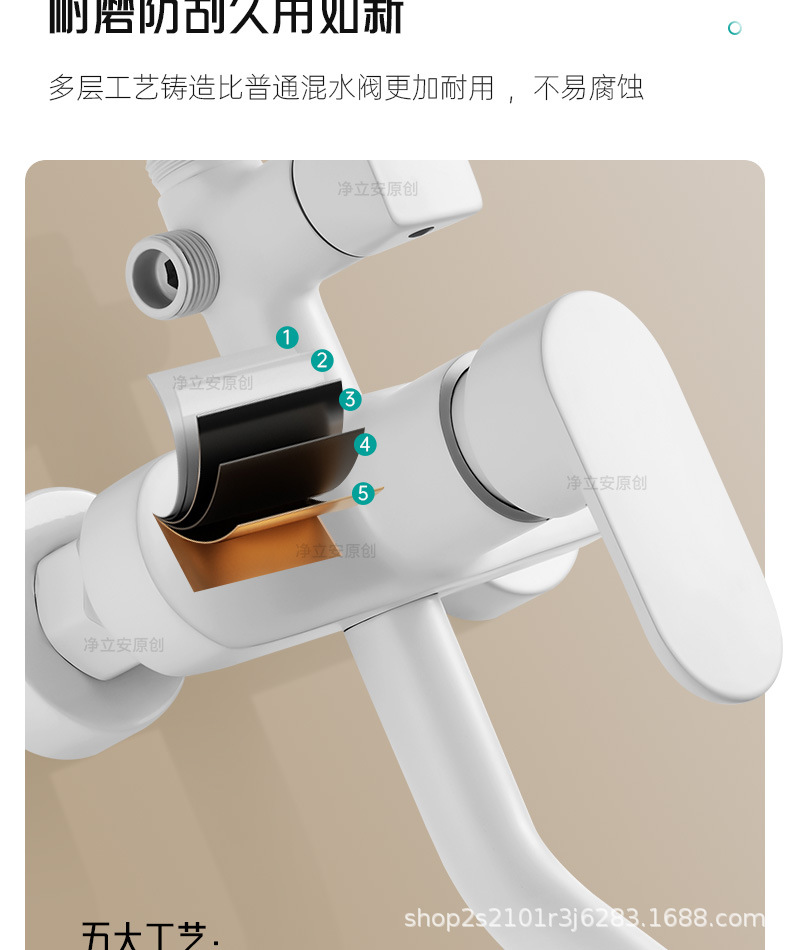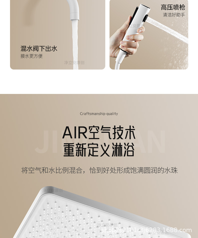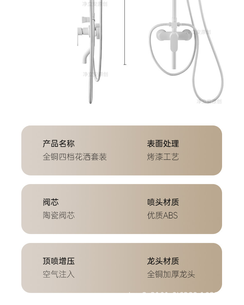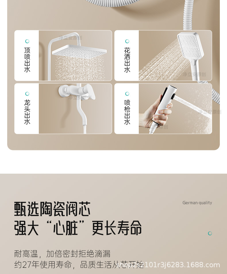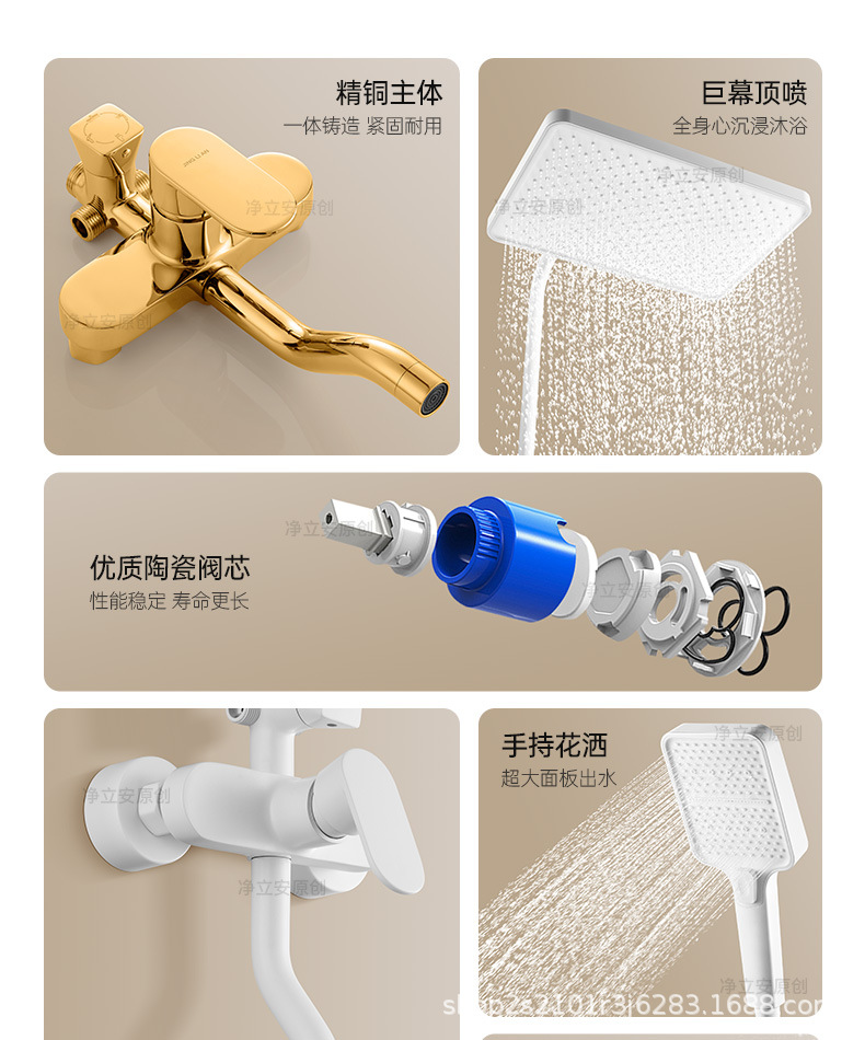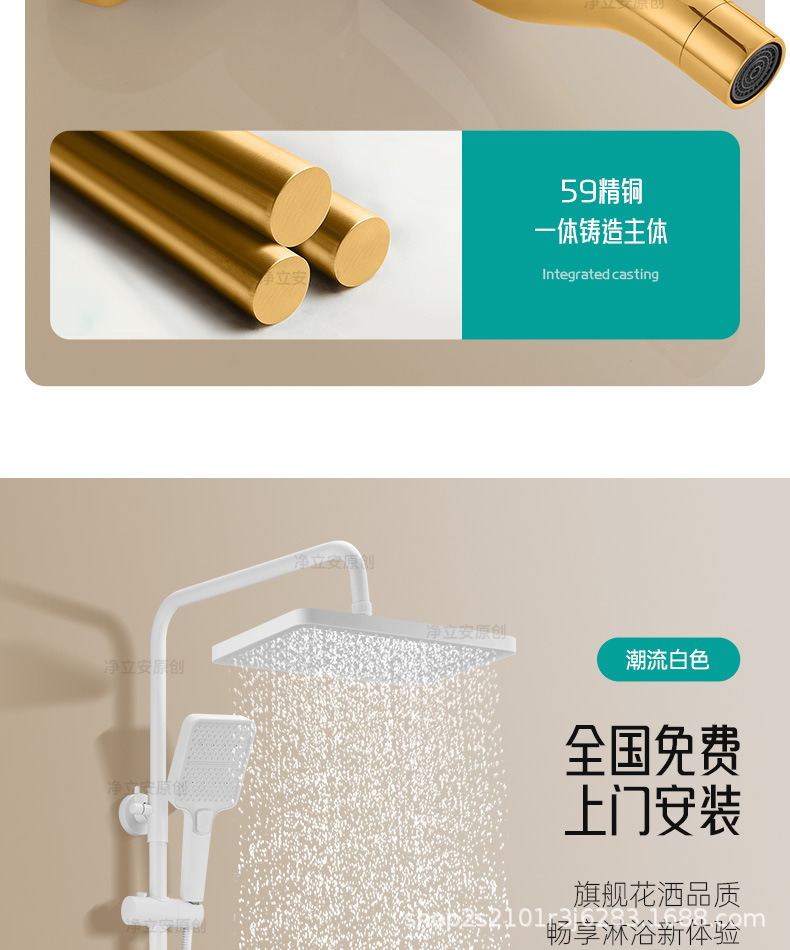 • 크림 스타일 [모두 구리●3단계 물 배출구】사각 샤워 세트●10년 보증