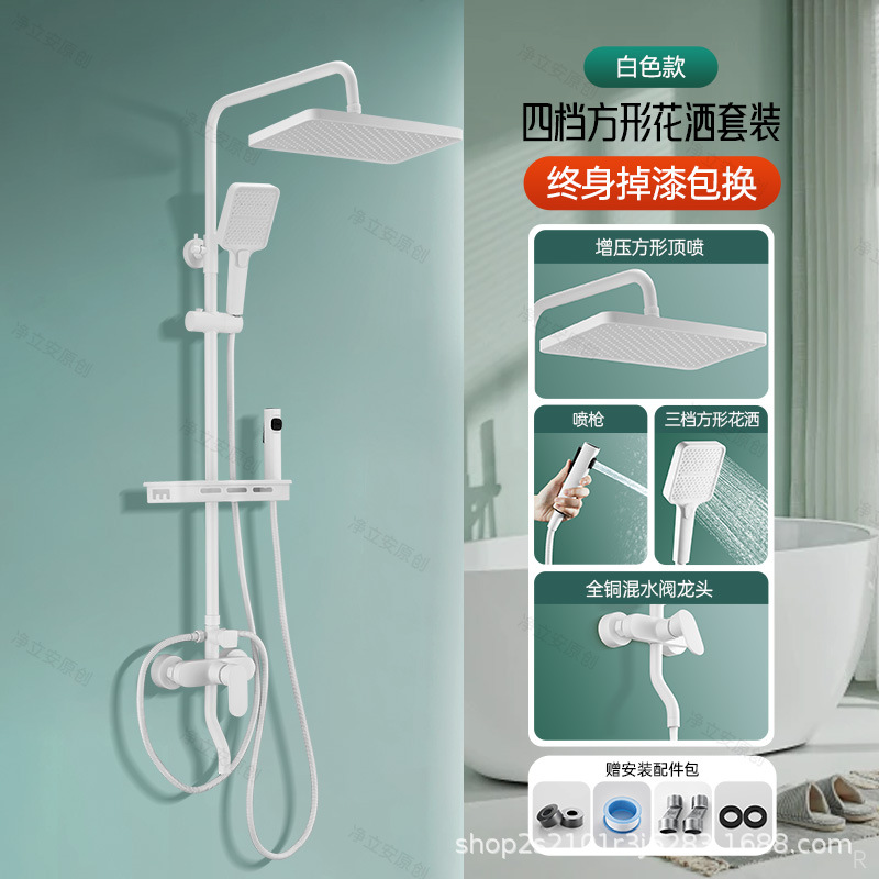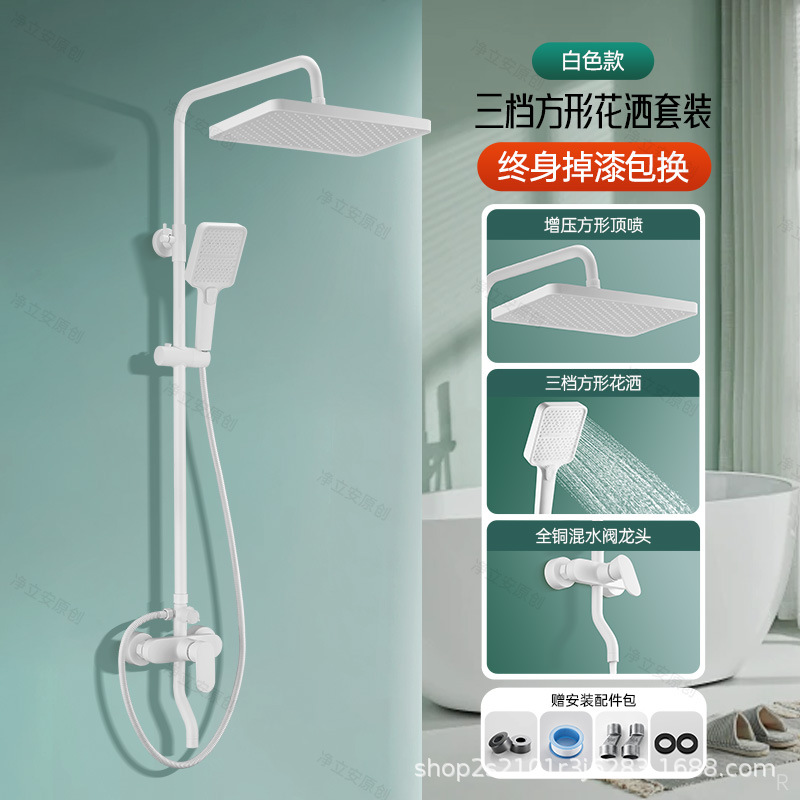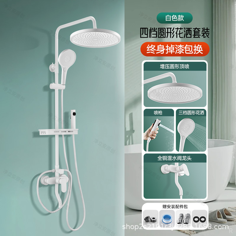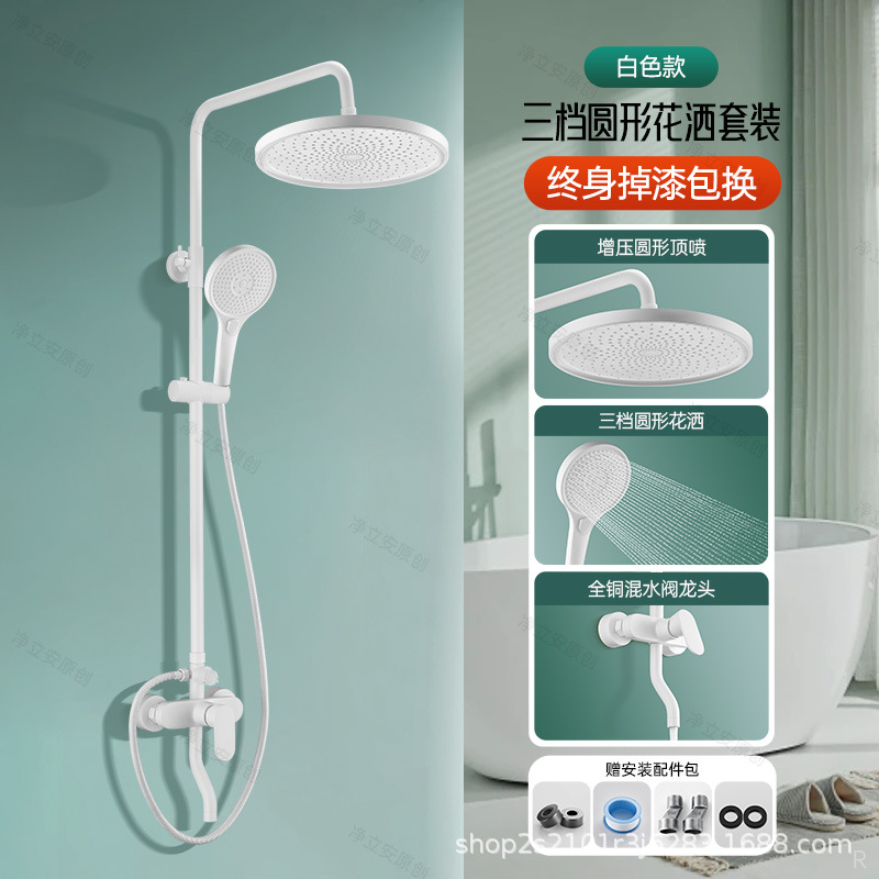 욕실 샤워 헤드 세트 전체 구리 흰색 레인 샤워 헤드 가정용 목욕 욕실 부스터 세트