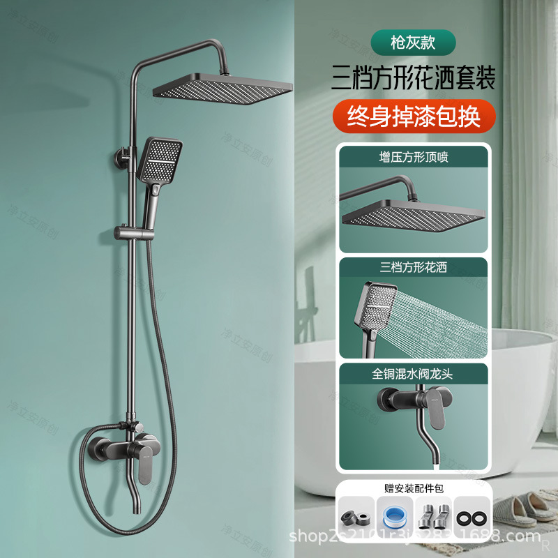 • 라이트 럭셔리 그레이 [올 구리●3단계 물 배출구】사각 샤워 세트●10년 보증