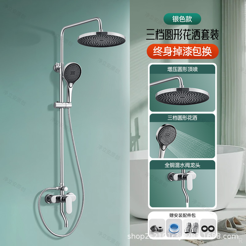 • 심플 실버[모두 구리●3단계 물 배출구】원형 샤워 세트●10년 보증