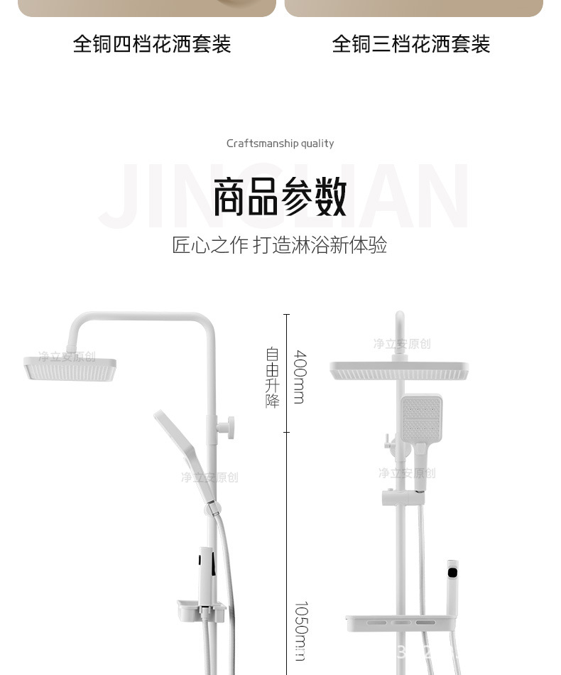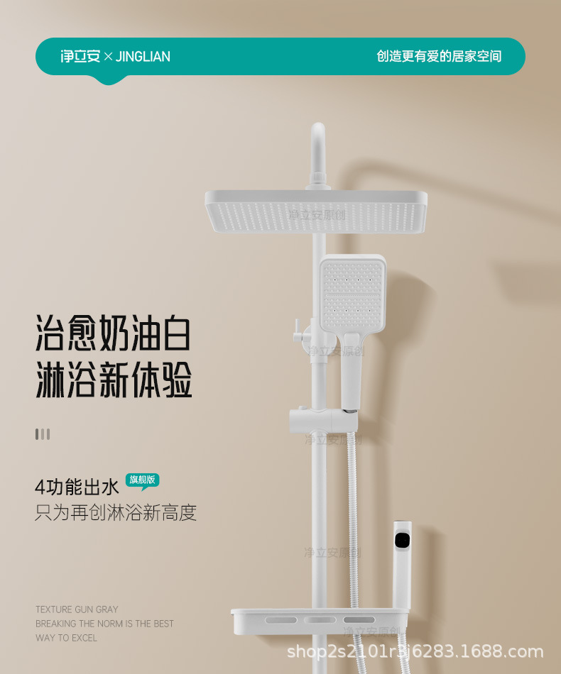 • 크림 스타일 [모두 구리●4단계 물 배출구】사각 샤워 세트●10년 보증