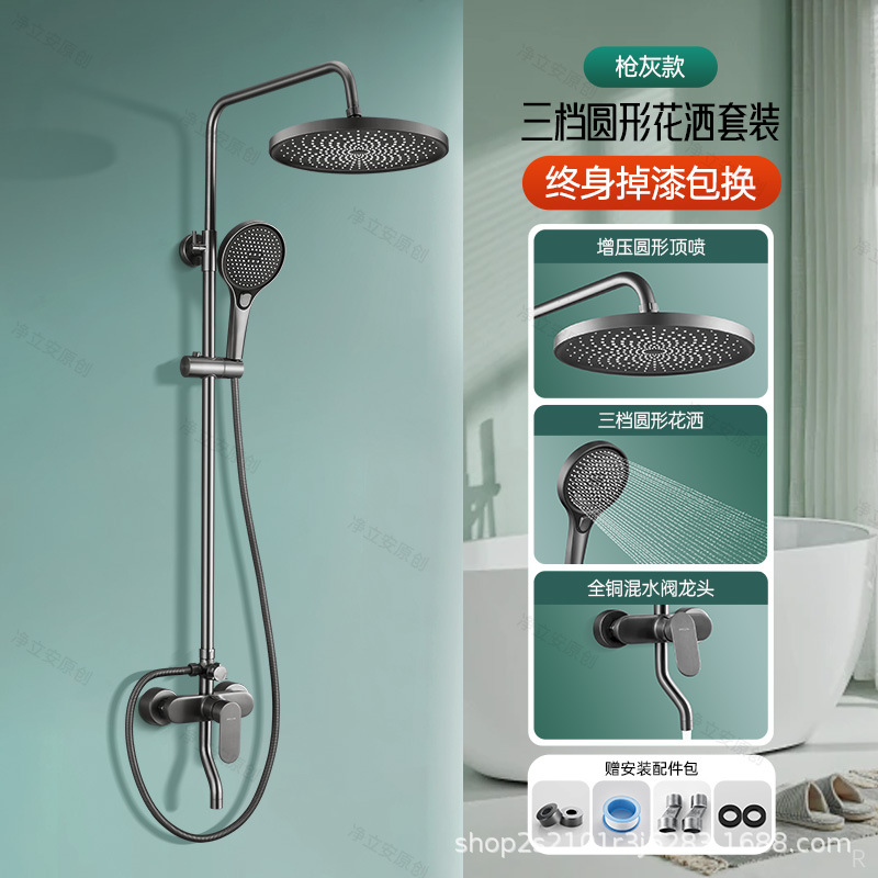 • 라이트 럭셔리 그레이 [올 구리●3단계 물 배출구】원형 샤워 세트●10년 보증
