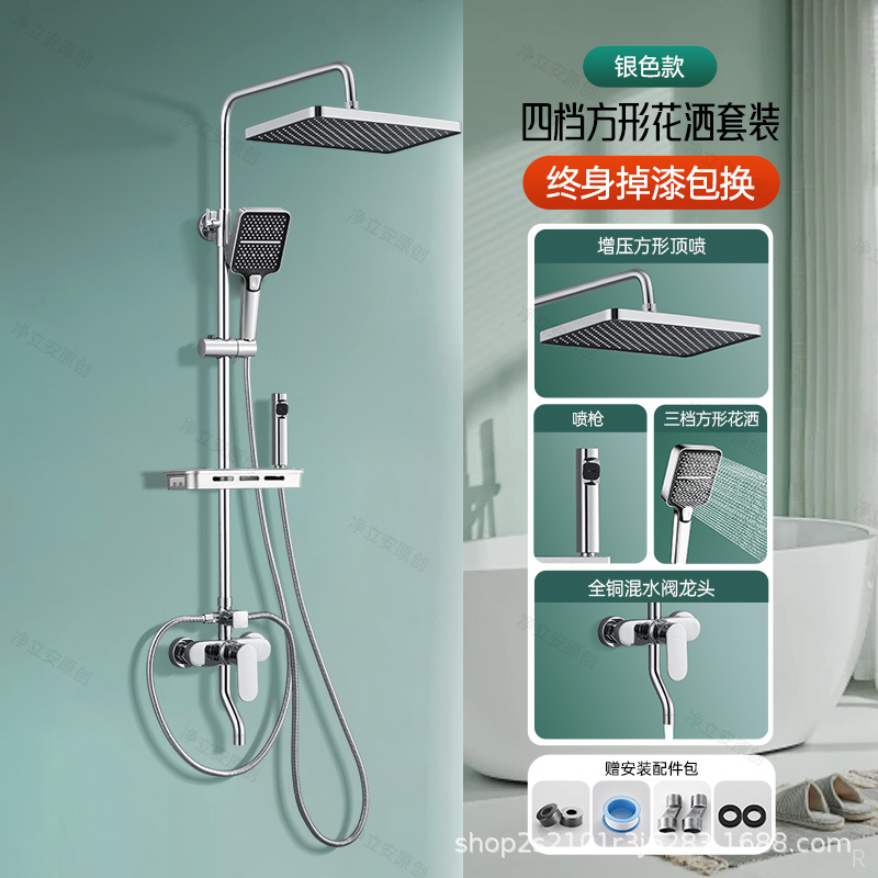 • 심플 실버[모두 구리●4단계 물 배출구】사각 샤워 세트●10년 보증