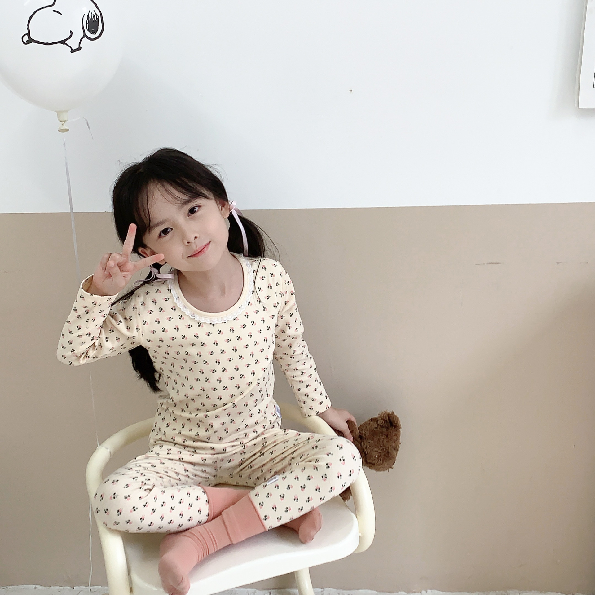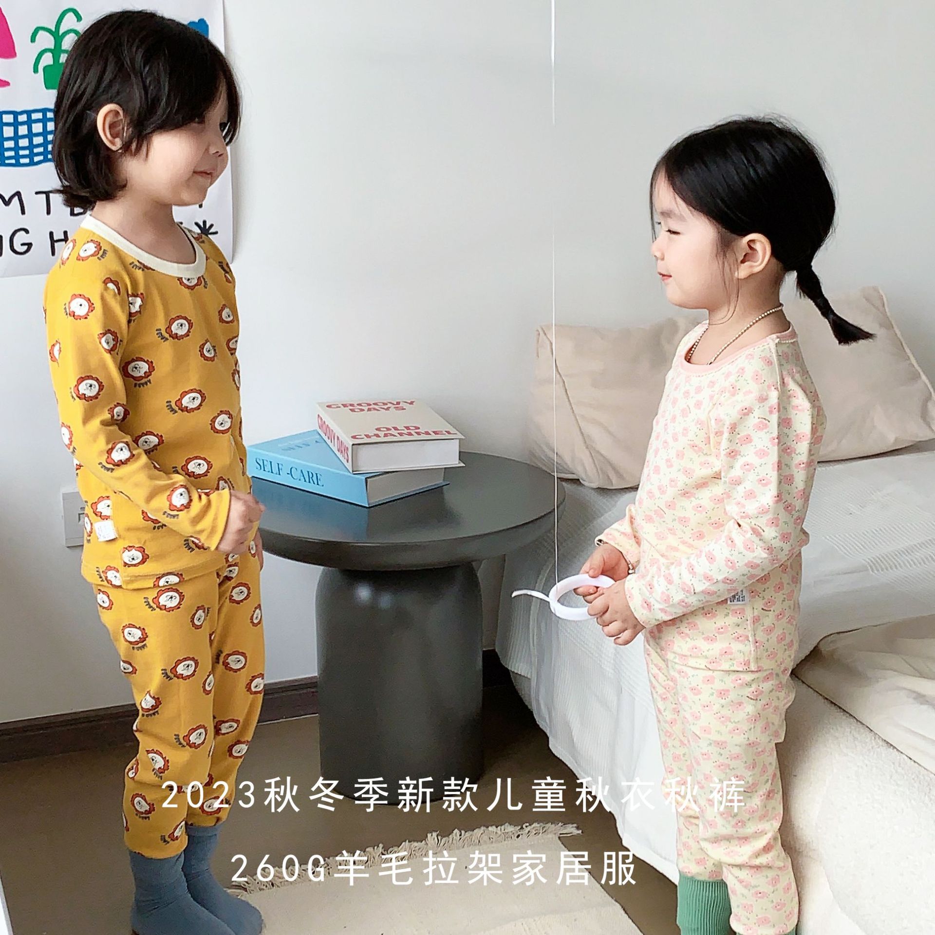 [맞춤형] 아동용 면 가을 옷과 긴 바지 세트 순면 뼈없는 속옷 소년 소녀 잠옷 가정복스토어 가기