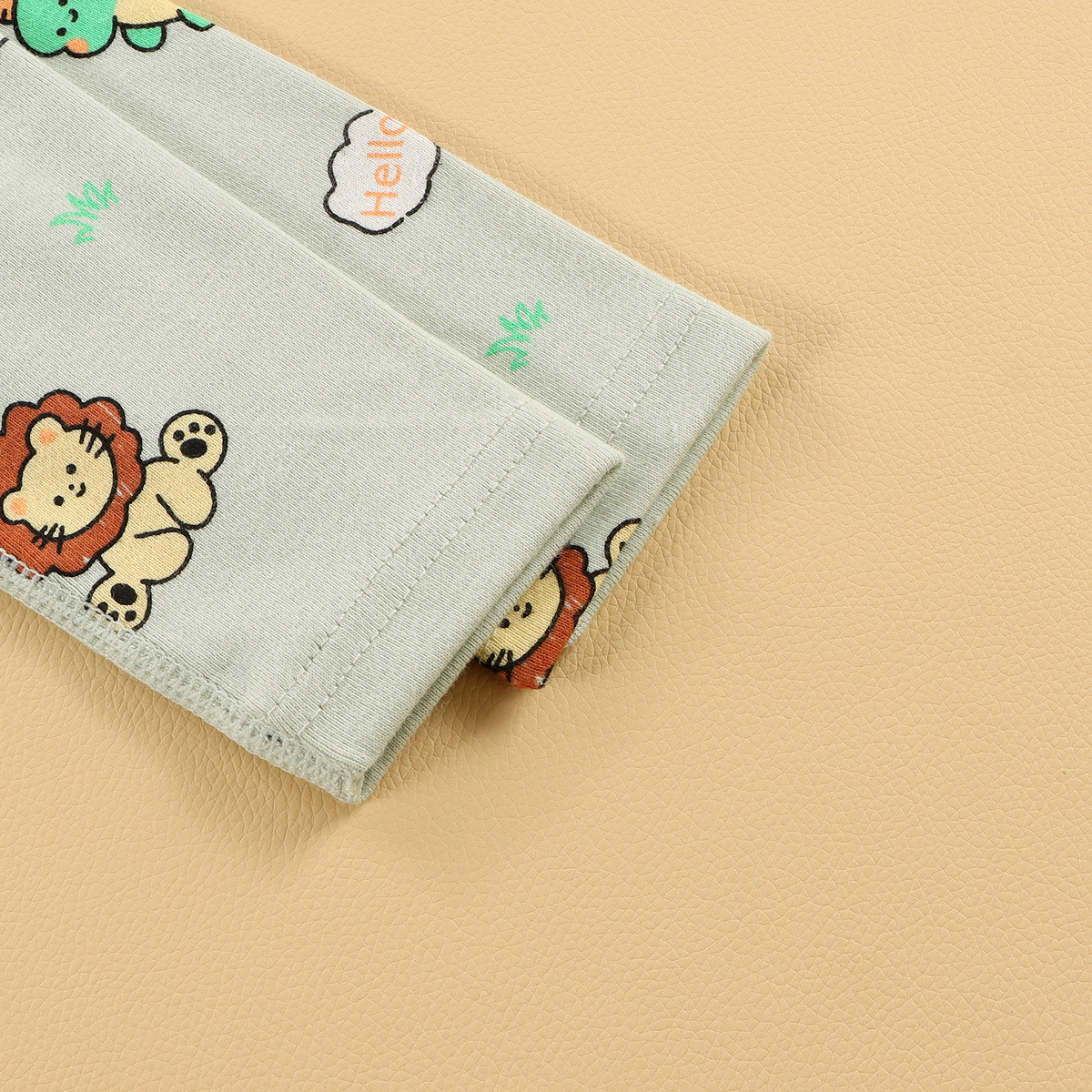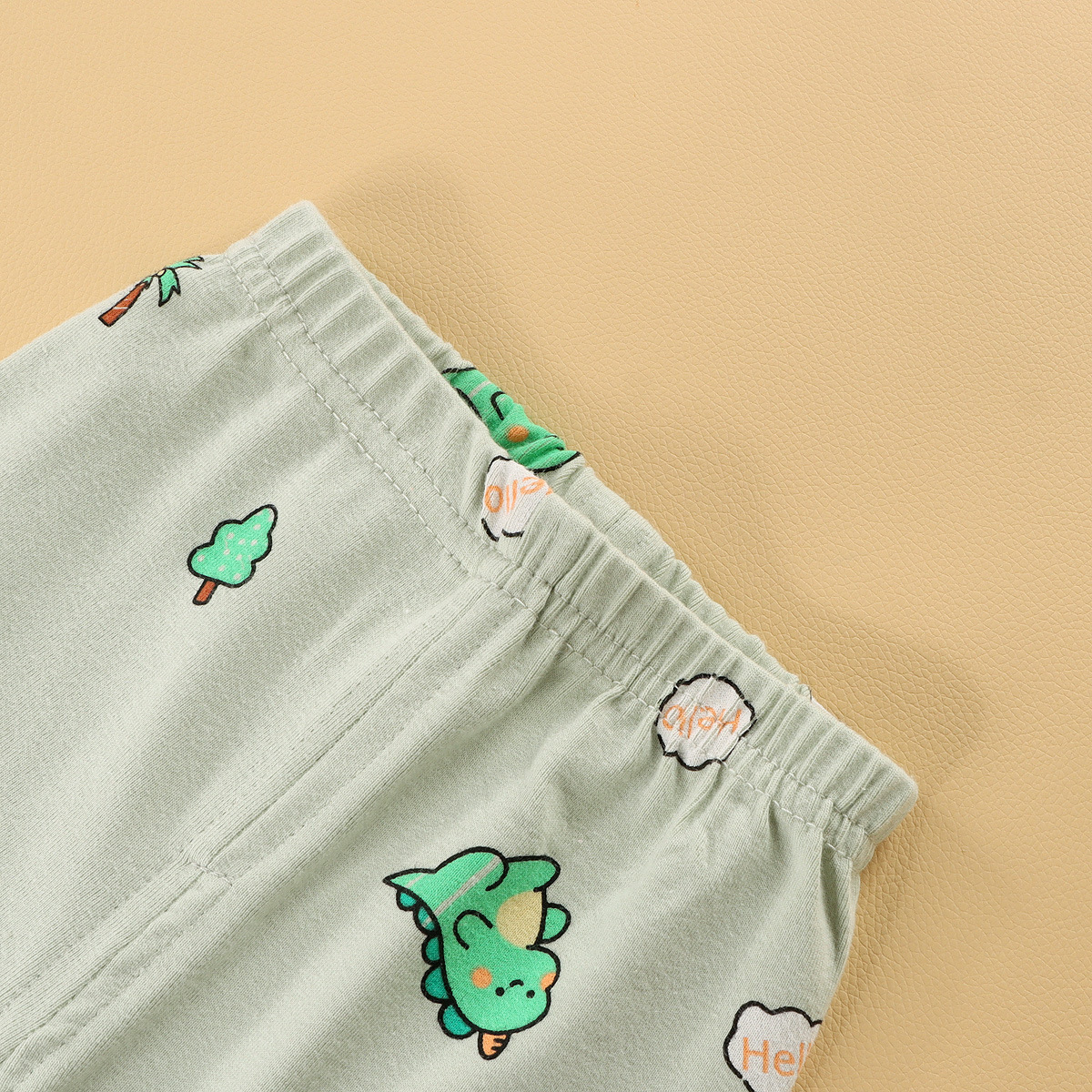 • 녹색 배경에 양모 프레임에 글자가 있는 공룡