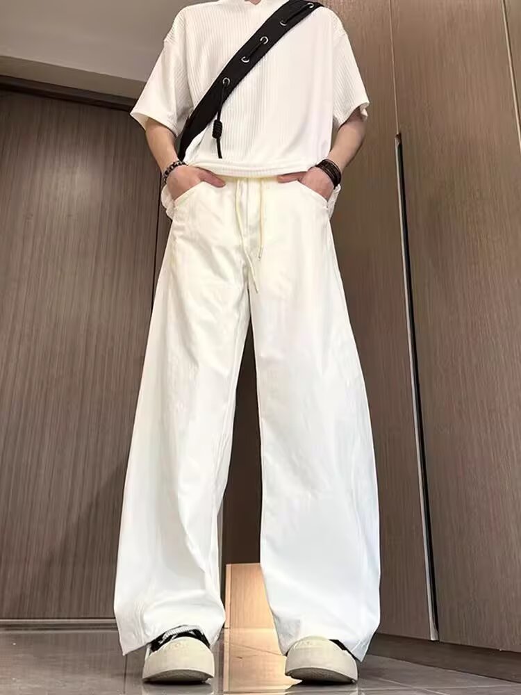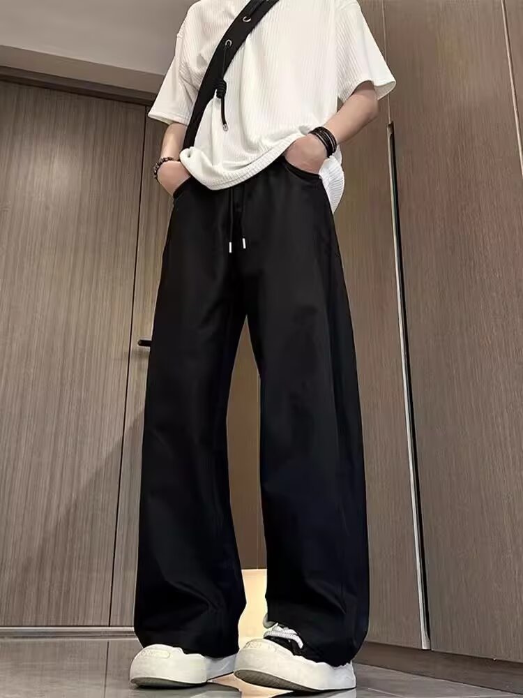 봄 여름 남성용 아메리칸 슬랜트 캐주얼 팬츠 트렌디한 하이 스트리트 채플린 팬츠 라지 사이즈 루즈 스트레이트 와이드 레그 롱 팬츠