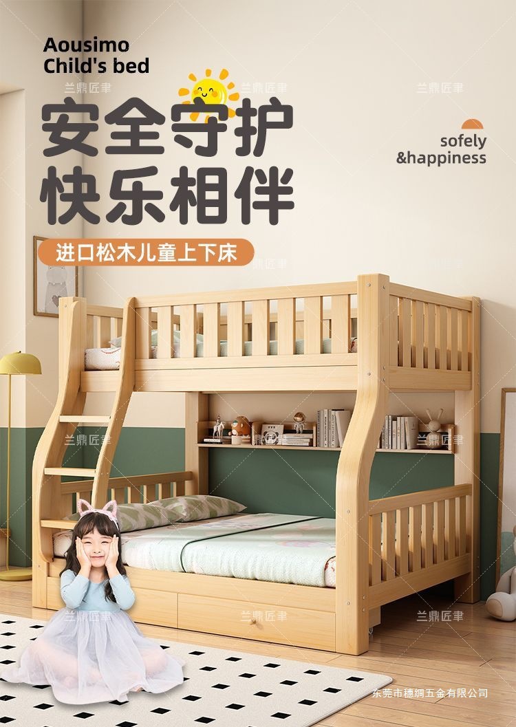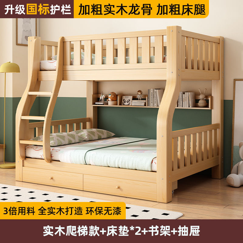 단단한 나무 침대 홈 침실 어린이 이층 침대 성인 작은 아파트 다기능 이층 침대 2층 더블 침대스토어 가기