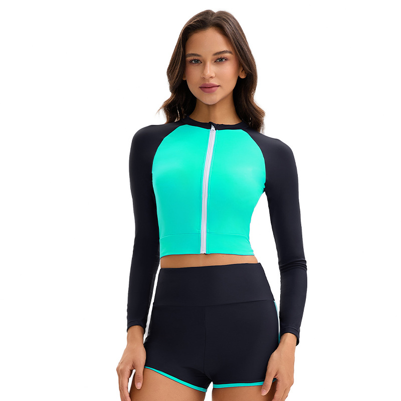 국경 간 긴팔 스플릿 복서 여성 수영복 아마존 새로운 잠수복 보수적 인 자외선 차단제 하이 웨이스트 컬러 블록 수영복스토어 가기