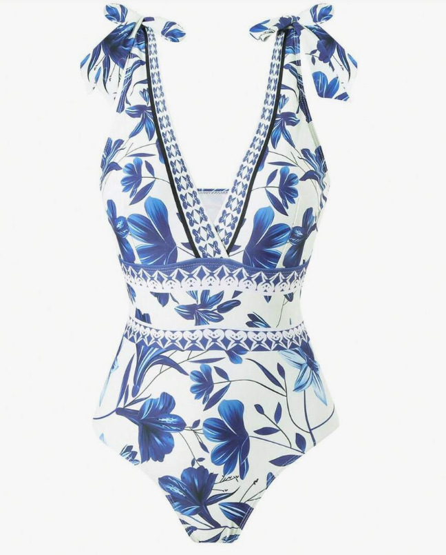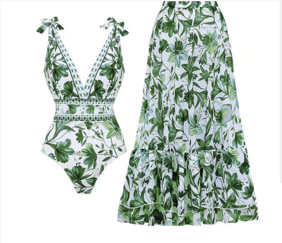 2025 유럽과 미국의 새로운 원피스 투피스 수영복 여성 복고풍 프린트 패션 섹시한 v 넥 스커트 슈트 수영복스토어 가기