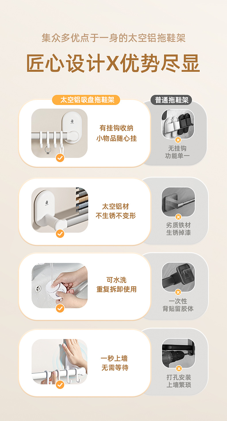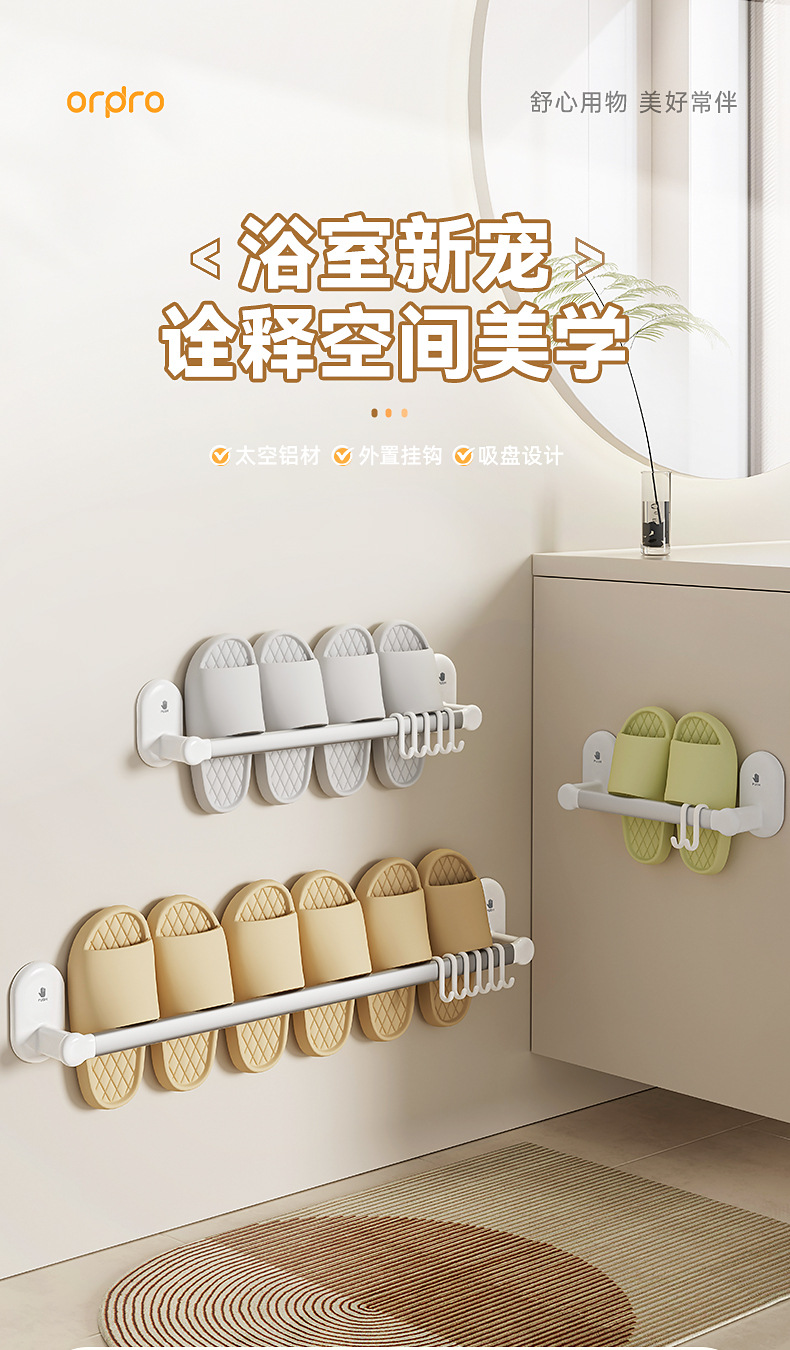 욕실용 흡착판 슬리퍼걸이, 화장실용 펀치프리 수납선반, 신발배수수납물품, 화장실 벽걸이걸이