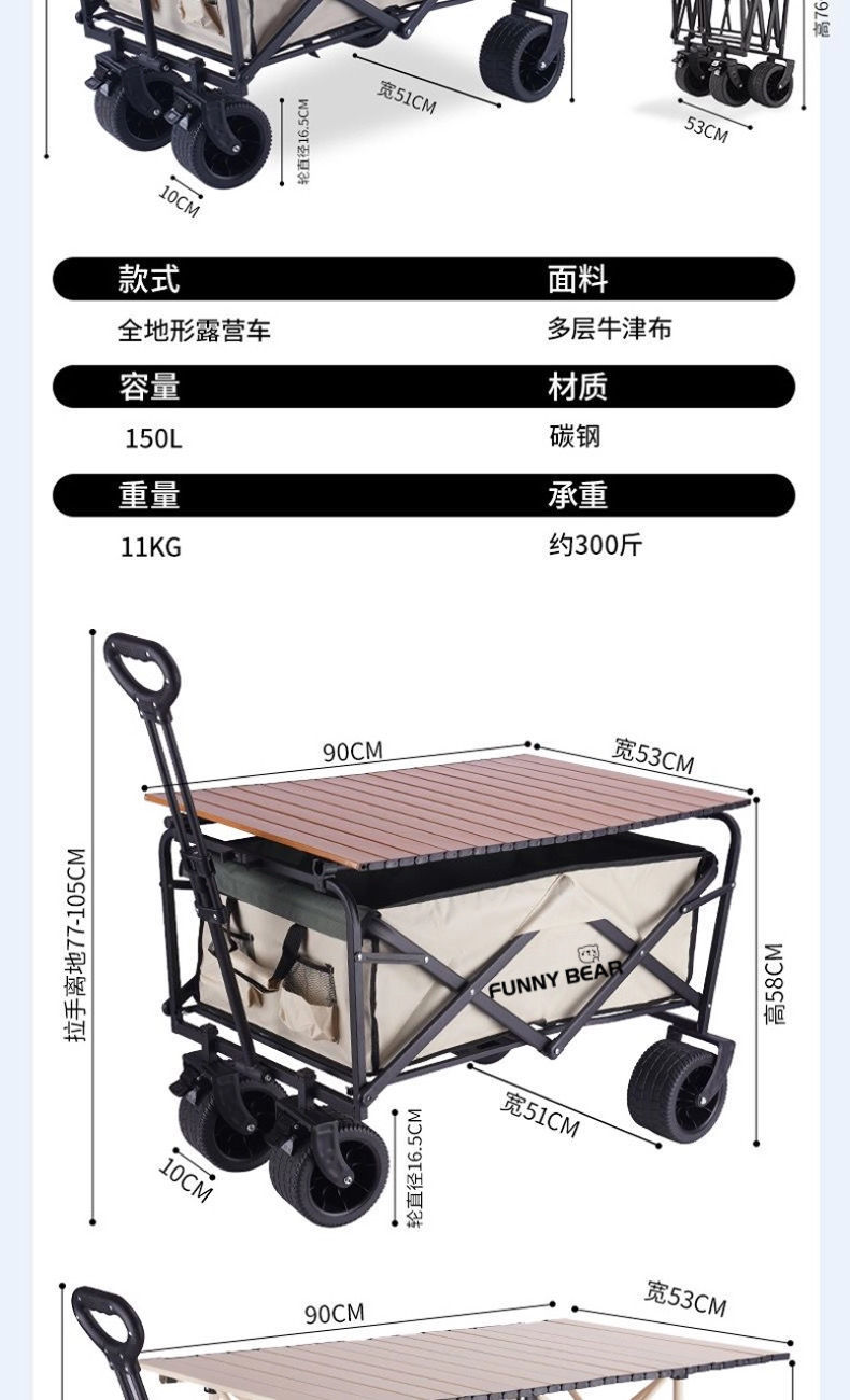 • Jindian Black [더블 레이어 900D 옥스포드 천] - 대형 오프로드 휠 + 높고 길쭉한 리프팅 스톨 테이블